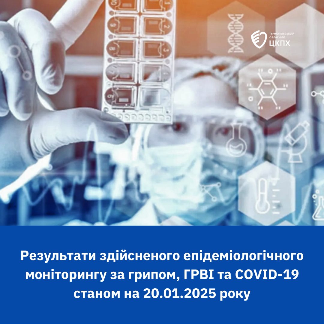 Інформуємо про результати моніторингу за грипом, ГРВІ та COVID-19 станом на 20.01.2025 року.
