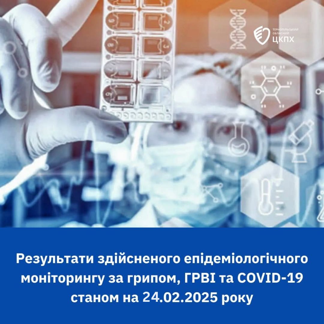 Інформуємо про результати епідеміологічного моніторингу за грипом, ГРВІ та COVID-19 станом на 24.02.2025 року.
