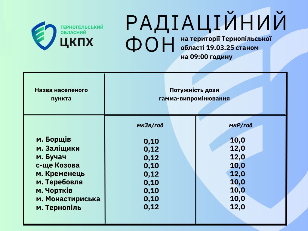 Радіаційний фон на території Тернопільської області 19.03.25 станом на 09:00 годину