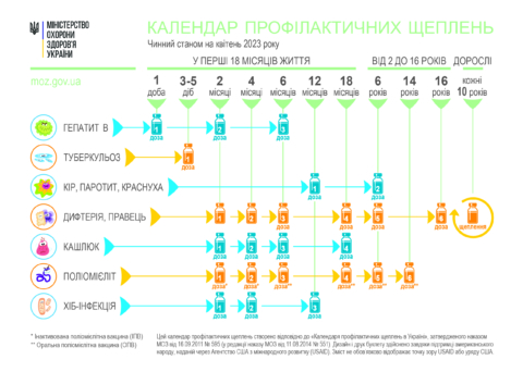 Вакцинація в Україні проводиться у відповідності до Календаря щеплень, який розроблено з урахуванням міжнародного досвіду, і на сьогодні, за умови його дотримання, він є найоптимальнішим для забезпечення повноцінного імунітету.