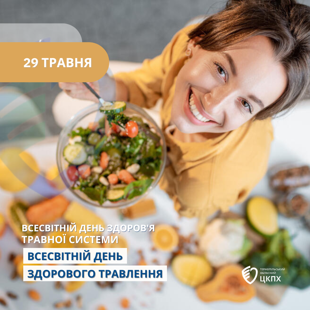 У Всесвітній день здоров’я травної системи Центр нагадує про важливість правильного харчування, збалансованого раціону та здорового способу життя. Адже багато захворювань можна попередити, просто змінивши харчові звички.