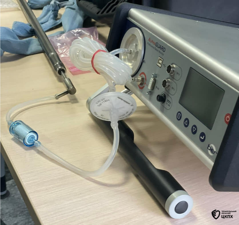 Окрім теоретичних знань учасники отримали і практичні навички роботи з приладом AlphaGUARD DF2000.