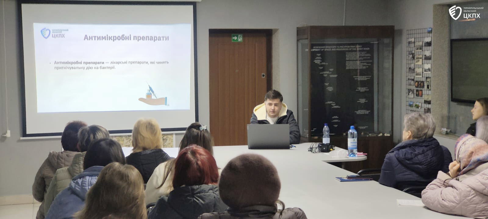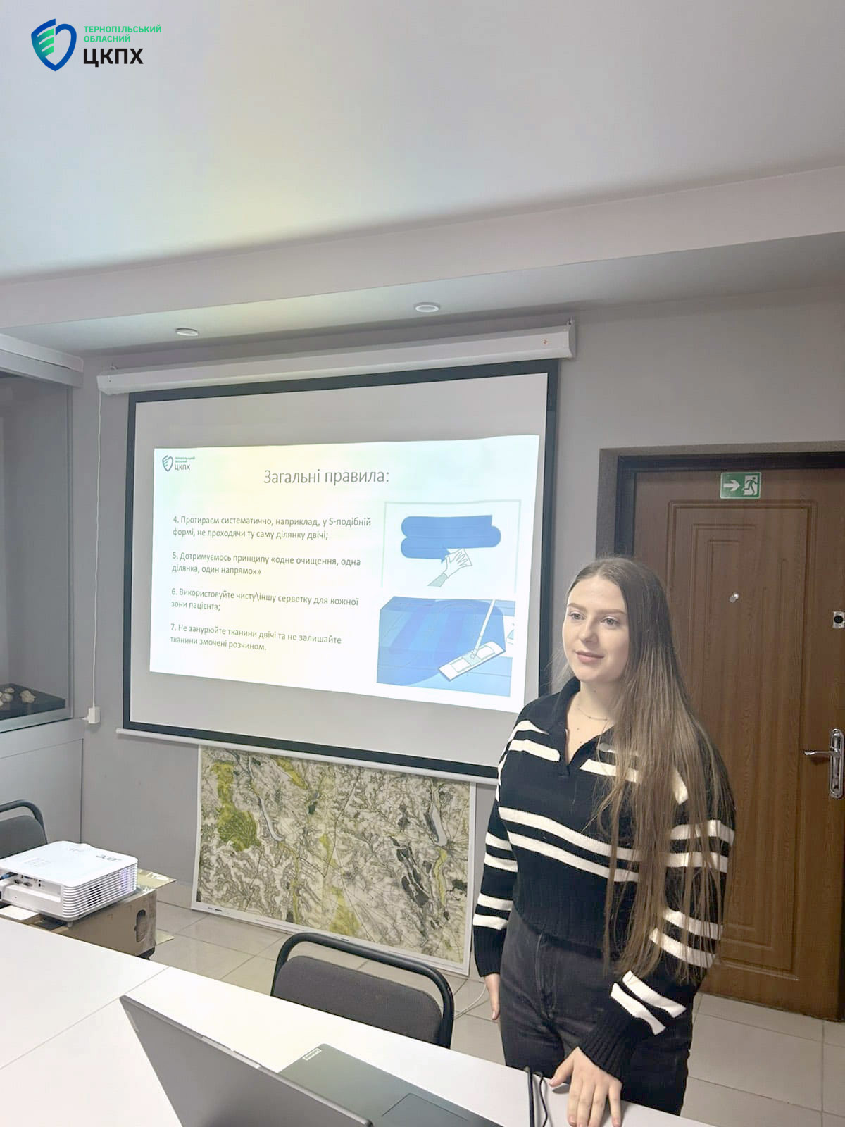 У рамках програми заходу з безперервного професійного розвитку з доповідями про управління з медичними відходами, адміністрування протимікробних препаратів та медичний клінінг в ЗОЗ виступили лікарі ДУ «Тернопільський ОЦКПХ МОЗ»: