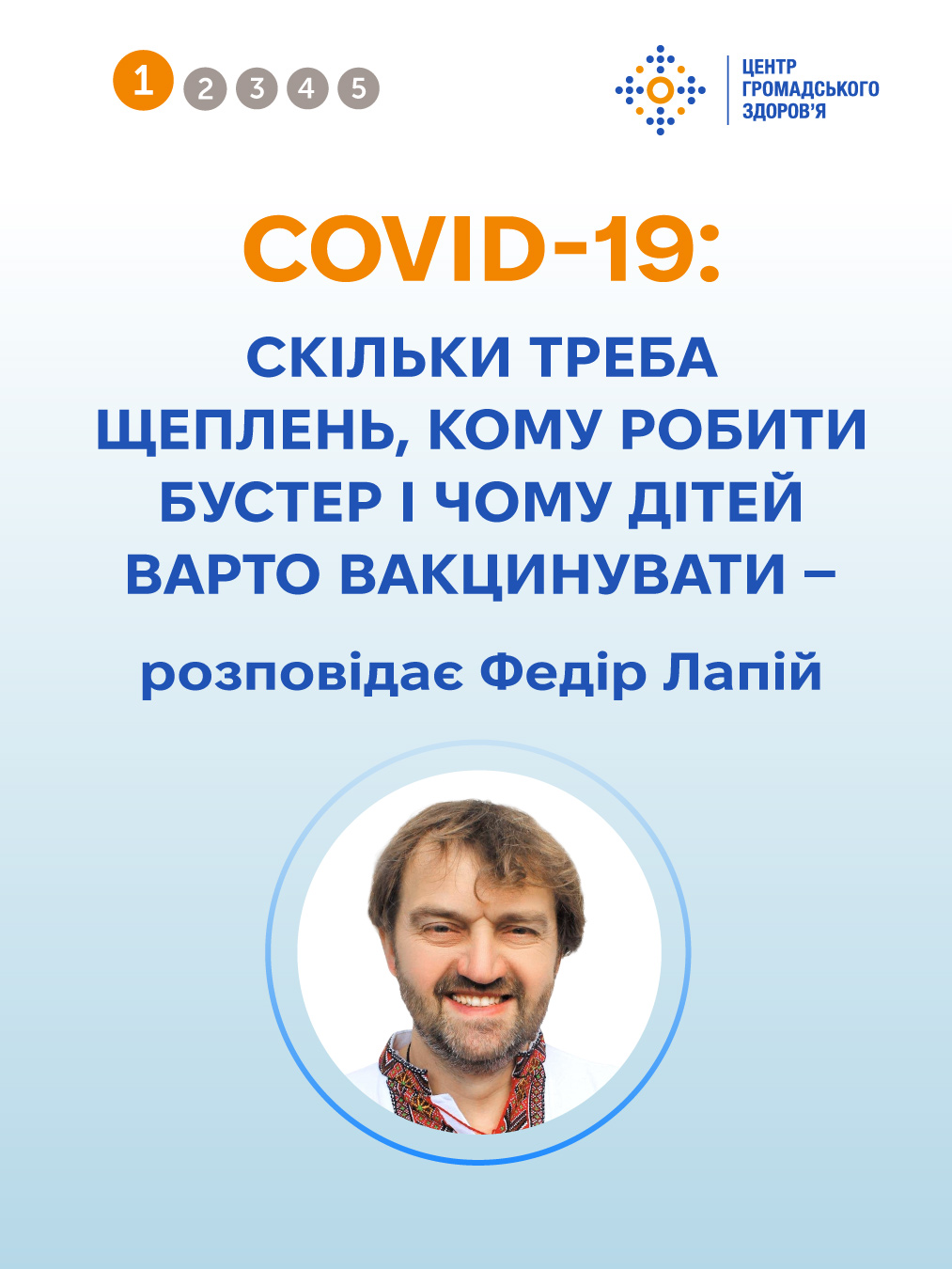 Центр громадського здоров’я поспілкувався про вакцинацію від COVID-19 з Федором Лапієм, головою Національної технічної групи експертів з питань імунопрофілактики (НТГЕІ), лікарем – дитячим інфекціоністом, доцентом кафедри педіатрії, імунології, інфекційних та рідкісних захворювань Міжнародного Європейського Університету.