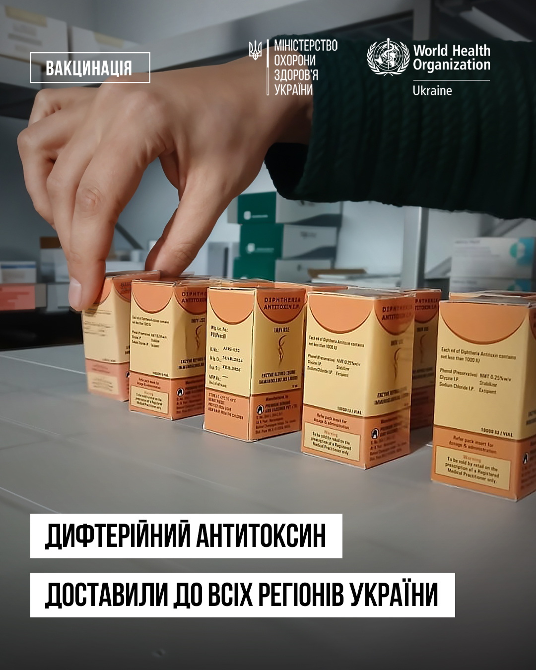 21 січня 2025Україна отримала 249 ампул дифтерійного антитоксину в рамках співпраці Міністерство охорони здоров’я України та World Health Organization Ukraine. Дифтерійний антитоксин доставлений до всіх регіонів.