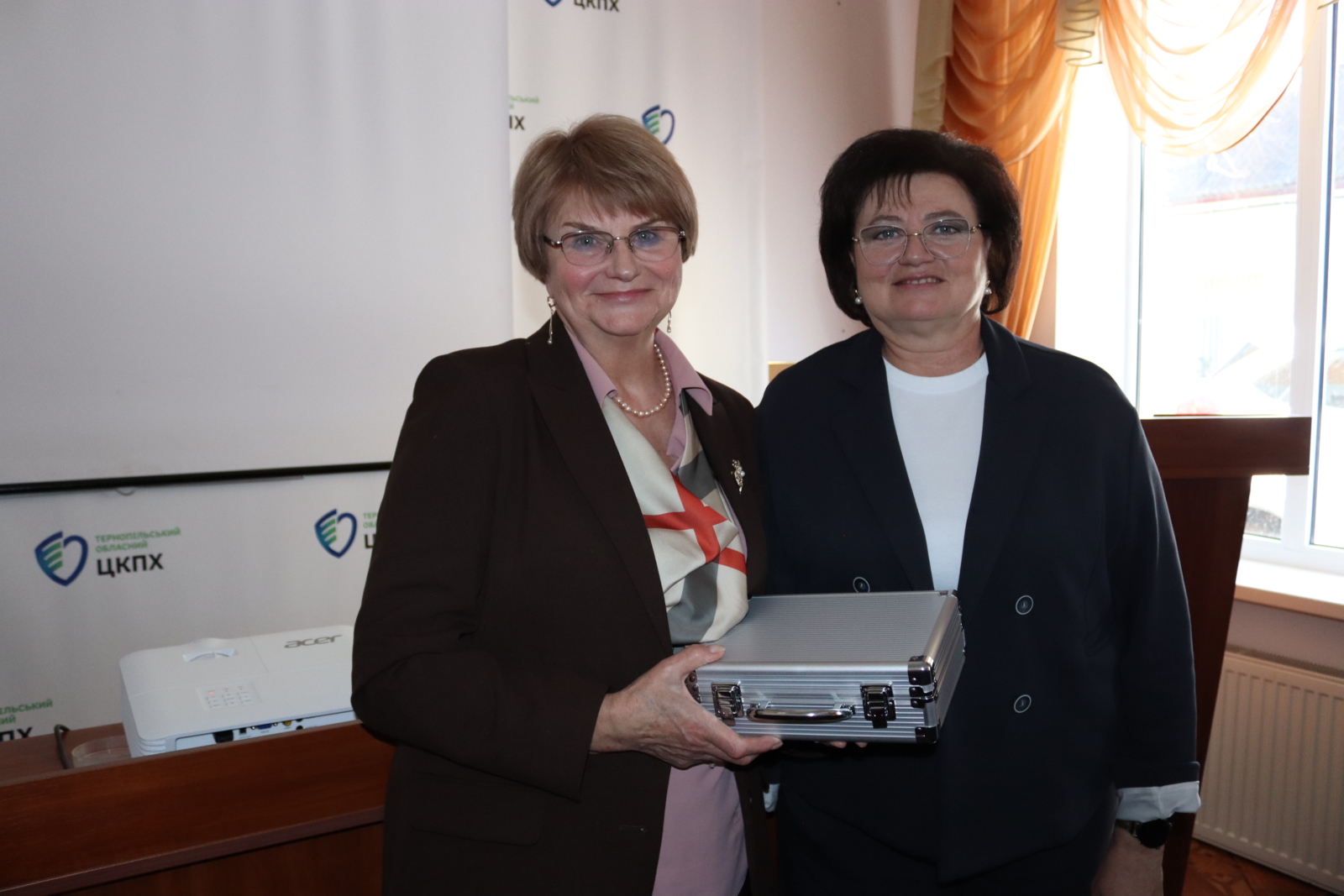 Яскравим завершенням наради став акт передачі сучасного обладнання. Генеральна директорка Оксана Чайчук вручила завідувачці Борщівського відділу Чортківського міськрайонного центру ДУ «Тернопільський ОЦКПХ МОЗ» Катерині Никорчук портативний газоаналізатор SKY 2000.