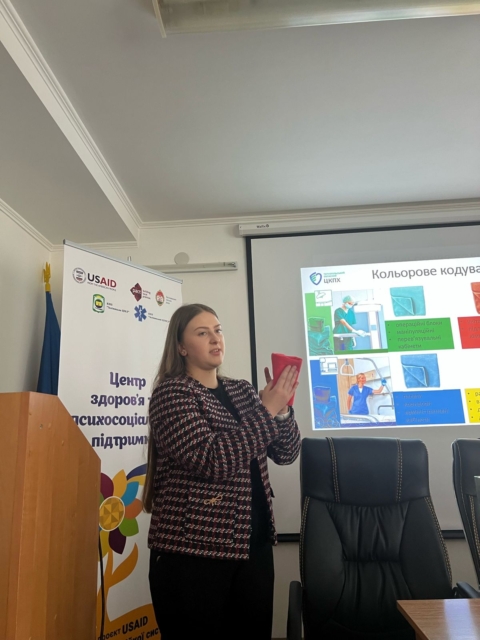 Лапін Ростислав – завідувач відділу антимікробної резистентності та інфекційного контролю, який розповів про ключові «Компоненти інфекційного контролю»;