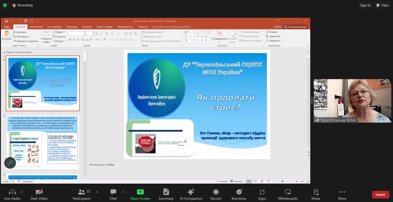 Фахівці ДУ «Тернопільський ОЦКПХ МОЗ» розповіли бібліотекарям ТОУНБ про те, як впоратися зі стресом