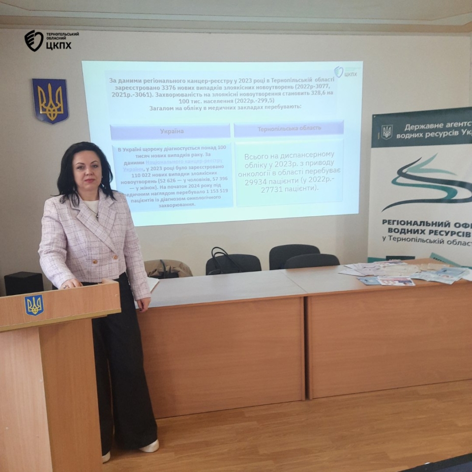 До Всесвітнього дня боротьби з раком , сьогодні , 11 лютого, фахівці відділу епідеміологічного нагляду та профілактики неінфекційних хвороб ДУ «Тернопільський обласний центр контролю та профілактики хвороб МОЗ України» провели інформаційно-просвітницький захід у Регіональному офісі водних ресурсів Тернопільщини.