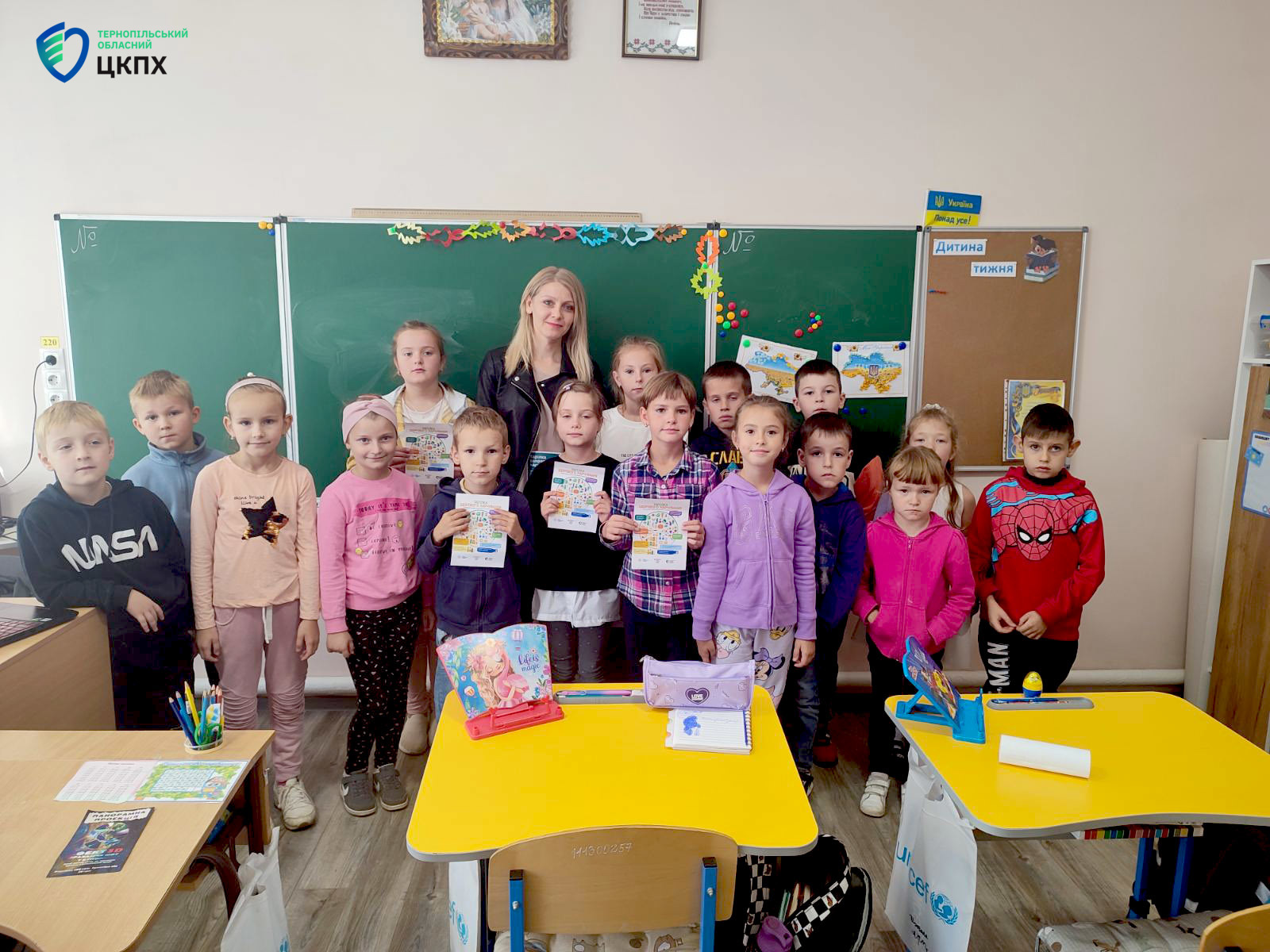 Петришин Марія, помічник лікаря-епідеміолога відділу епідеміологічного нагляду (спостереження) та профілактики неінфекційних захворювань ДУ «Тернопільський ОЦКПХ МОЗ України» провела презентації на теми «Основи здорового харчування» та «Гігієна зору» серед учнів 1-4 класів, надала інформацію учням про основи знань здорового харчування, про негативний влив нездорового харчування на організм, уявлення про корисну їжу, про білки, жири, вуглеводи, вітаміни, що таке трансжири, а ще – навички культури і гігієни правильного харчування, вміння вибирати корисні продукти. Також розповіла про необхідність дотримання гігієни зору під час зорового навантаження, роз’яснила що таке гімнастика для очей, провела з дітьми практичні заняття та показала як правильно виконувати вправи щодо відпочинку та гімнастики для очей.
