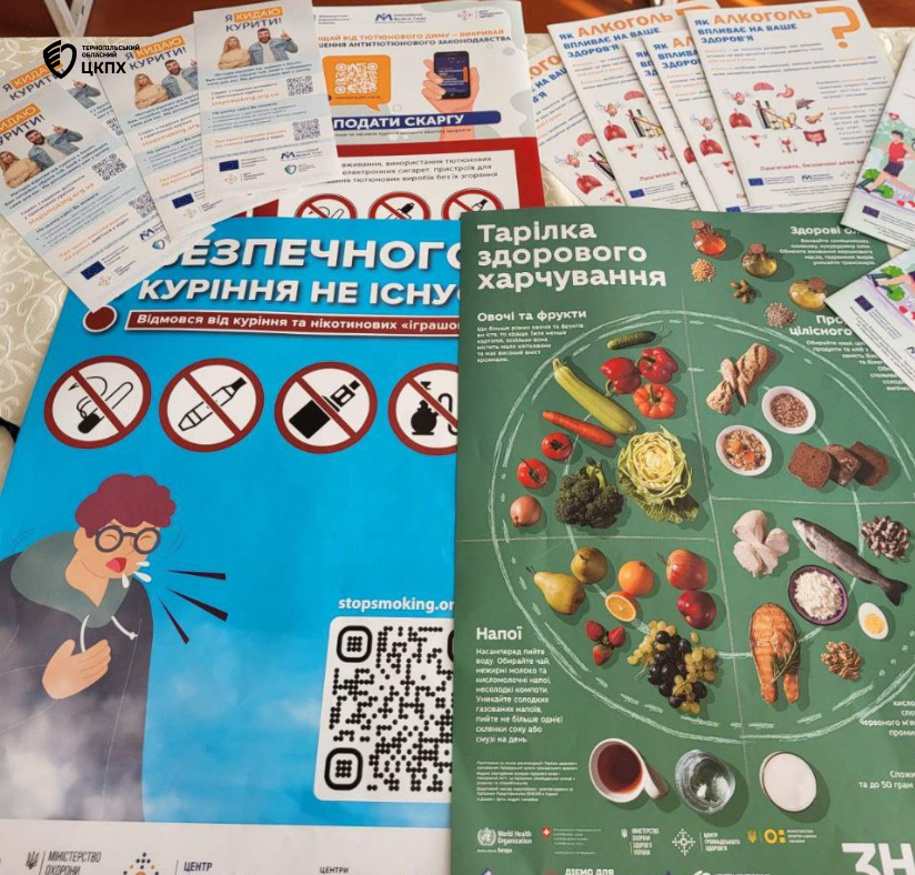 Після завершення презентацій, з метою закріплення отриманих знань, працівники ДУ “Тернопільський ОЦКПХ МОЗ” розповсюдили серед учнів та вчителів інформаційно-просвітницькі матеріали: