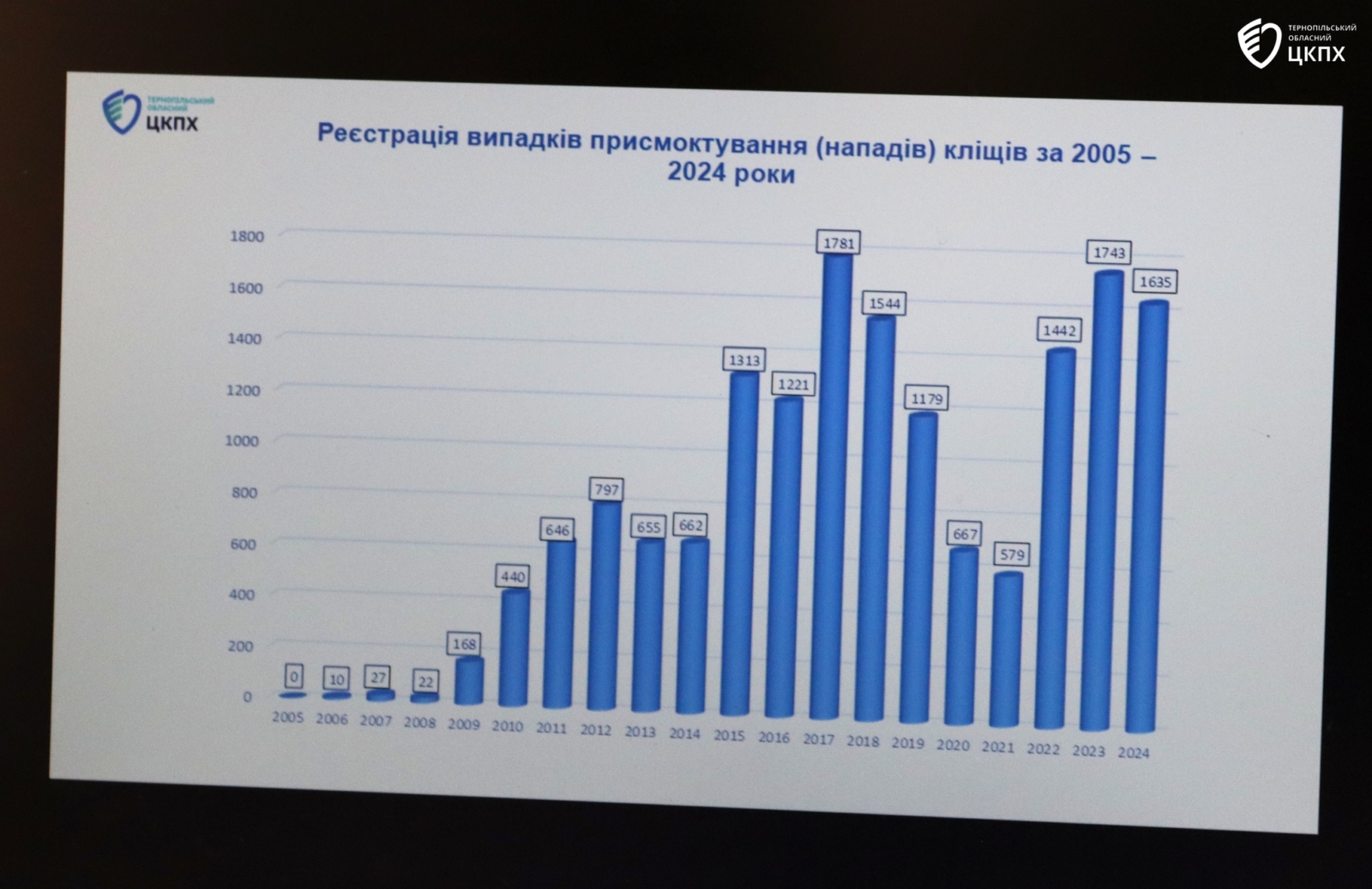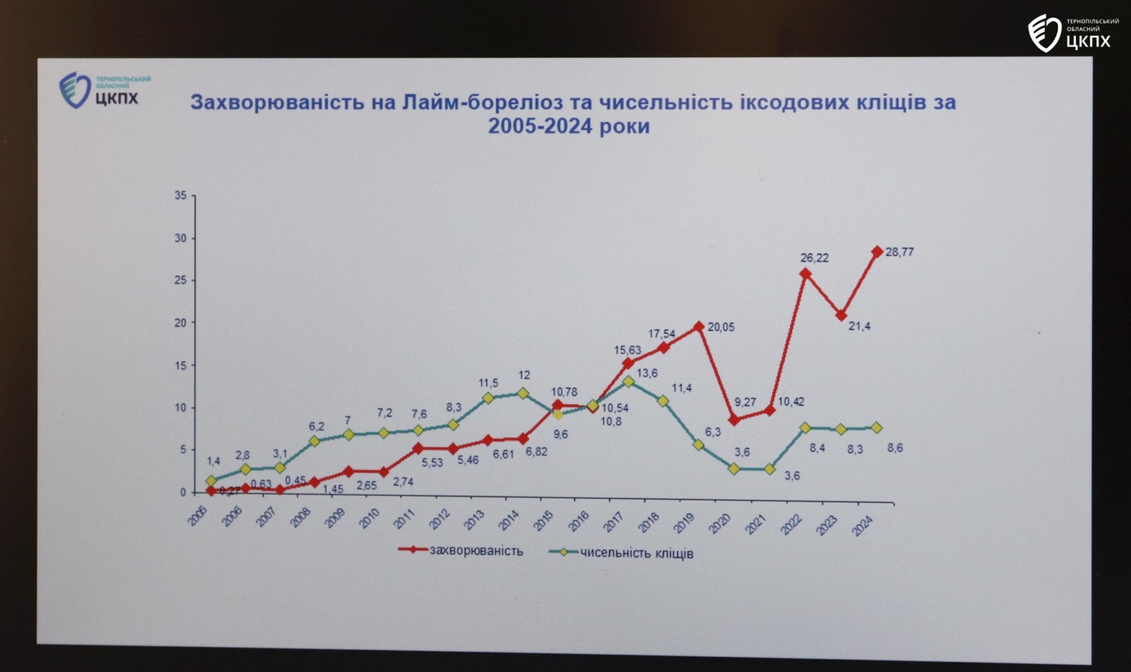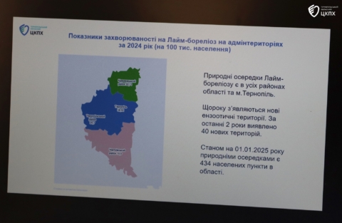 «У Тернопільській області, за останні 20 років значно зросла кількість випадків хвороби Лайма, що прямо пов’язано зі значним збільшенням кількості кліщів. Якщо у 2005 році було зафіксовано лише 3 випадки цього захворювання, то у 2024 році їх стало вже 293. І ця тривожна тенденція продовжується: лише за перші три місяці 2025 року зареєстровано ще 24 випадки хвороби Лайма. Ці цифри говорять про те, що ризик зараження кліщовими інфекціями в нашій області значно збільшився, тому будьте особливо обережні!» − наголосила генеральна директорка Центру.