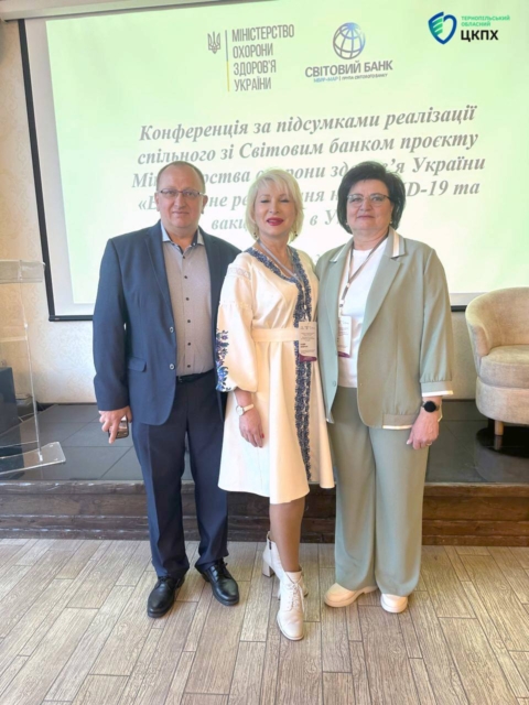 Участь в заході за підсумками реалізації спільного зі Світовим банком проєкту МОЗ взяла генеральна директорка ДУ «Тернопільський обласний центр контролю та профілактики хвороб МОЗ України», головна державна санітарна лікарка Тернопільської області Чайчук Оксана.