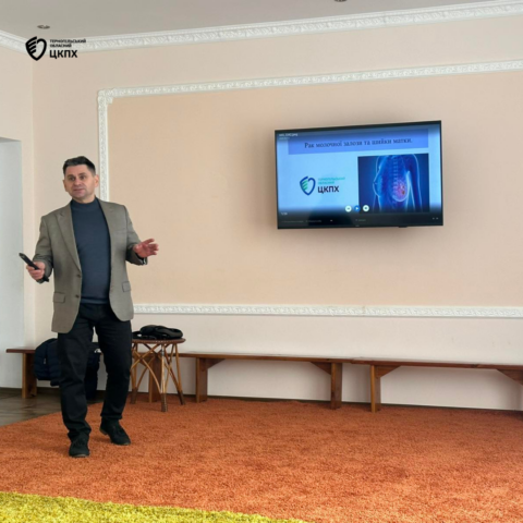 Михайло Романів, завідувач відділу епідеміологічного нагляду та профілактики неінфекційних хвороб Теребовлянського відділу ТМЦ ДУ «Тернопільський ОЦКПХ МОЗ України», перетворив складну тему онкології на захоплюючу розповідь, відповідаючи на всі запитання працівників закладу.