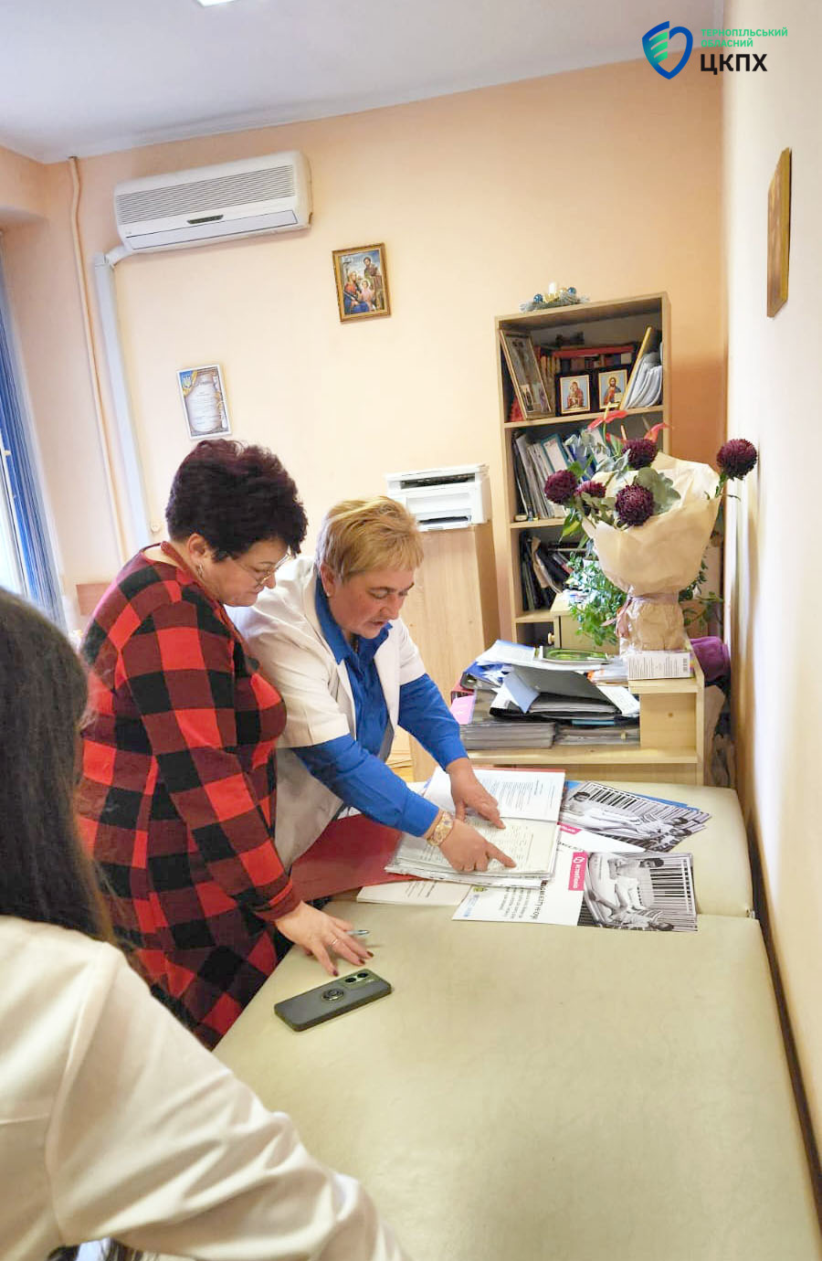Впродовж візиту спільно зі Світланою Крутяк, завідувачкою відділу епідеміологічного нагляду та профілактики інфекційних хвороб Тернопільського міськрайонного центру та Анастасією Бортняк, лікаркою епідеміологинею проаналізовано питання щодо профілактики інфекційного контролю у медичному закладі.