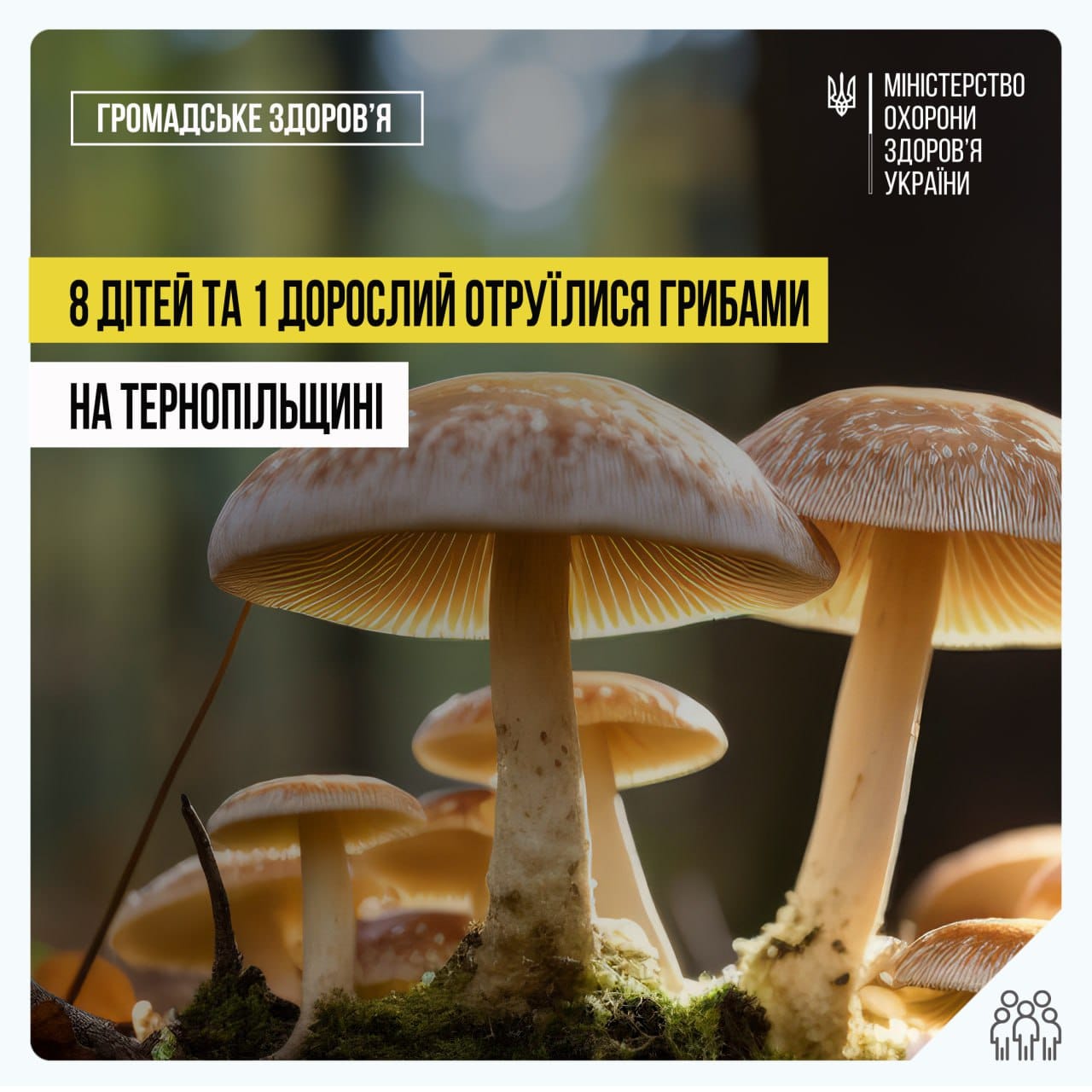 На Тернопільщині восьмеро дітей і один дорослий отруїлися дикими грибами. Семеро з дітей – з однієї сім’ї, ще одна – гостювала в родині. З усіх госпіталізованих лише однорічна дитина перебувала у задовільному стані, решта – у важкому.