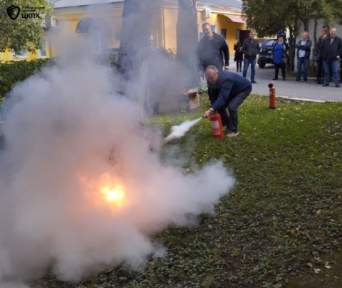 Під час навчання фахівці нашого Центру відпрацювали алгоритми дій при виникненні пожежі, поновили практичні навички користуванням первинними засобами пожежогасіння та дізналися багато нового про пожежну безпеку.
