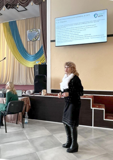 Світлана Горохівська, лікар-епідеміолог, представила тематичні презентації, проінформувавши про актуальність теми онкозахворювань, фактори ризику та канцерогенні фактори, пов’язані зі шкідливими умовами на виробництві, забрудненістю повітря та навколишнього середовища (азбест, вихлопні гази дизельних двигунів, радон).
