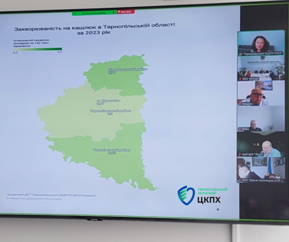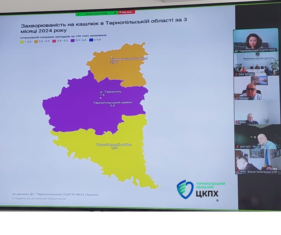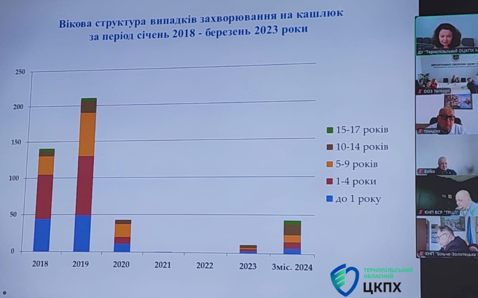 Також було представлено статистику захворюваності на кашлюк в Тернопільській області. Ця інформація була подана для розуміння масштабів проблеми та оцінки ефективності вжитих заходів. Проаналізували причини ускладнення епідемічної ситуації з кашлюком та обговорили рекомендації щодо профілактики та діагностики кашлюку.