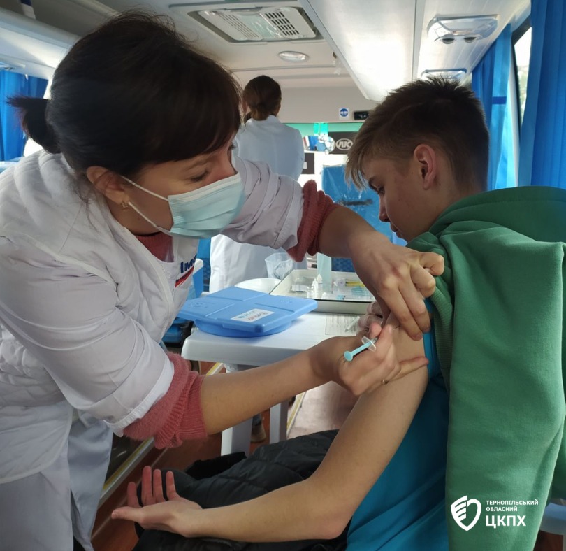 Оксана Чайчук взяла участь у виїзді спеціалізованим вакцинальним автобусом Чортківського міськрайонного центру ДУ «Тернопільський ОЦКПХ МОЗ» у Гусятинську ОТГ, а саме в смт. Гусятин