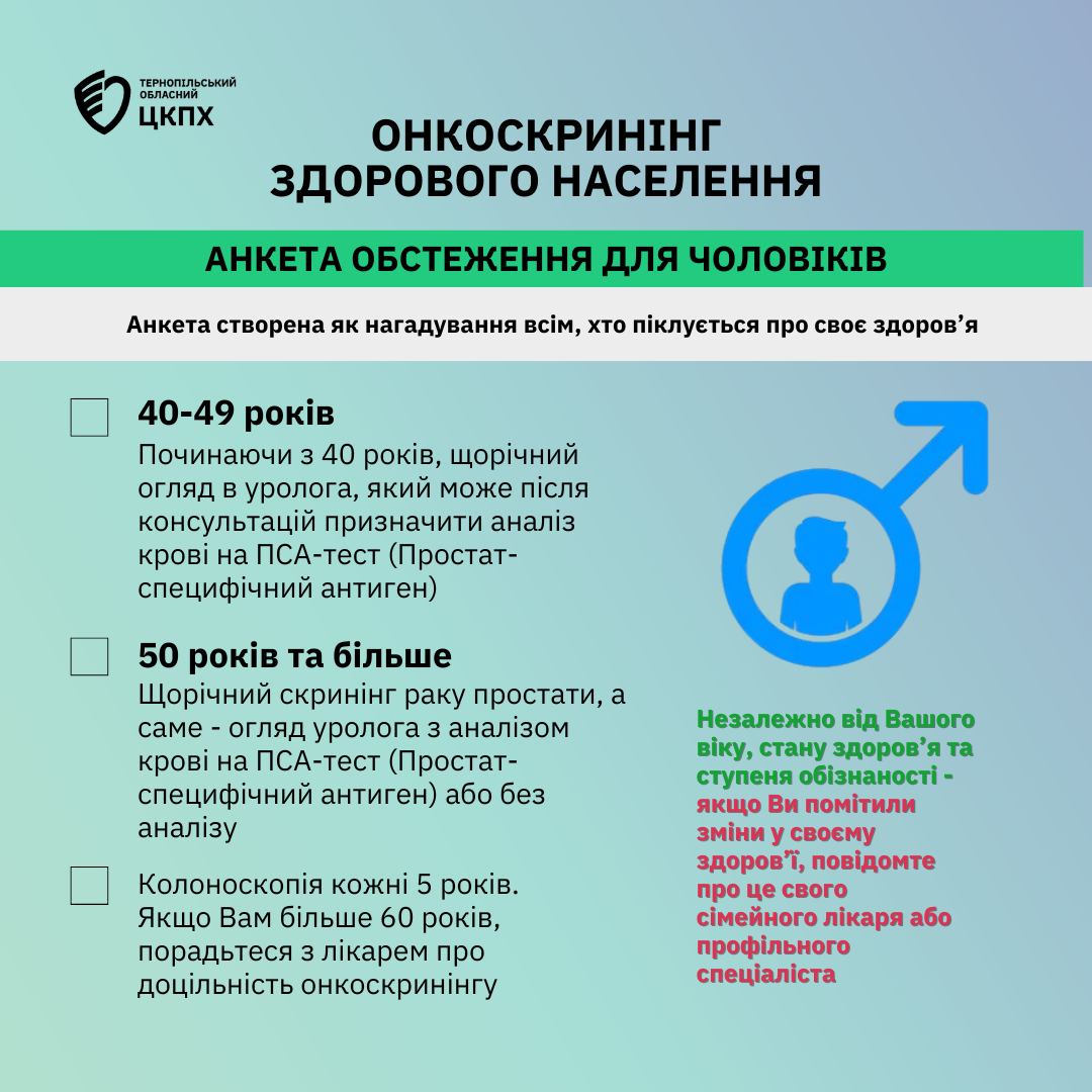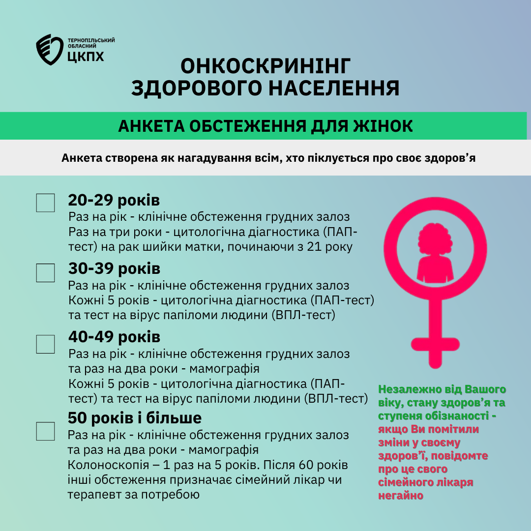 Більше – в інфографіці ДУ «Тернопільський обласний центр контролю та профілактики хвороб МОЗ України» «Онкоскринінг здорового населення»