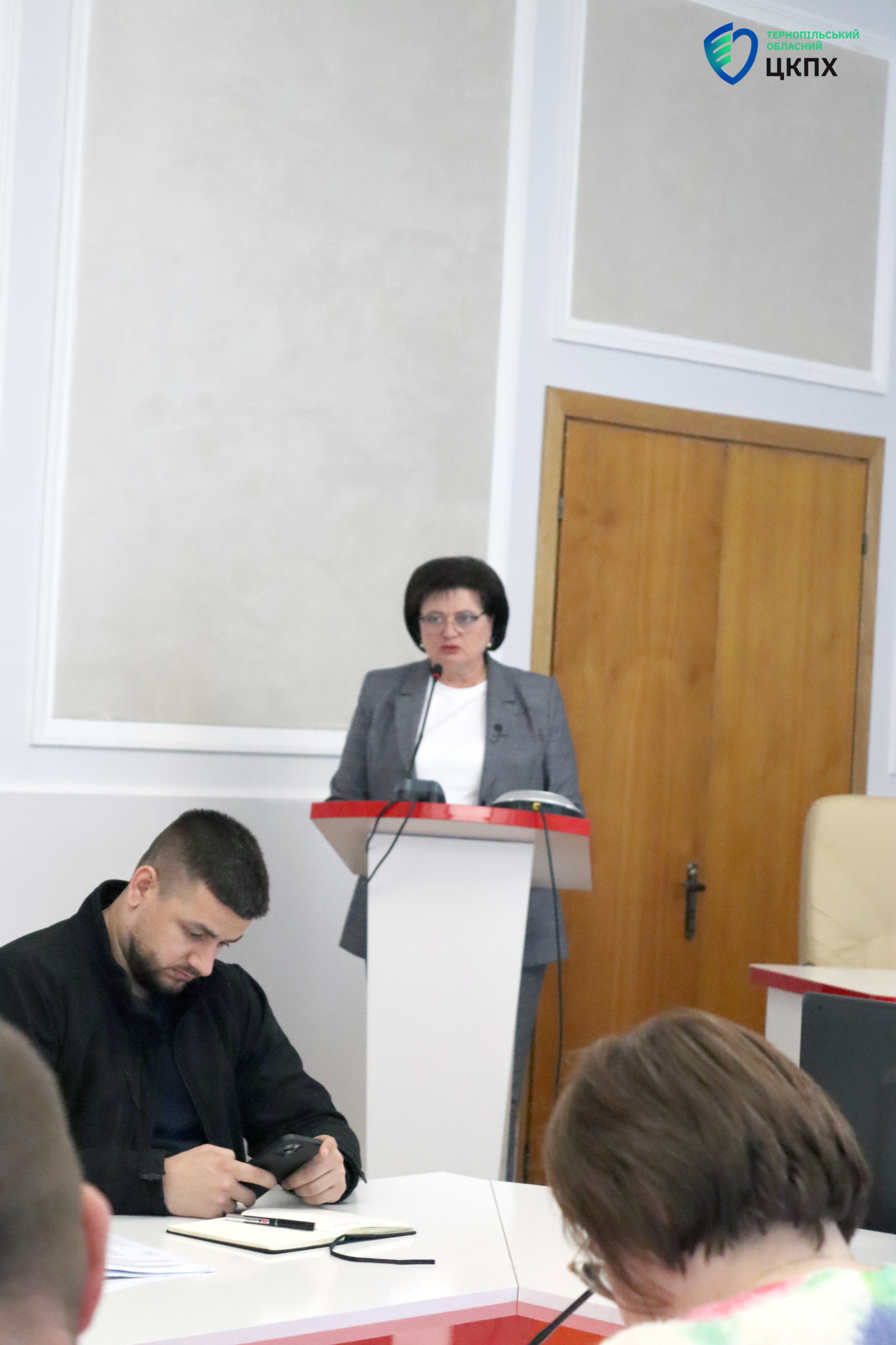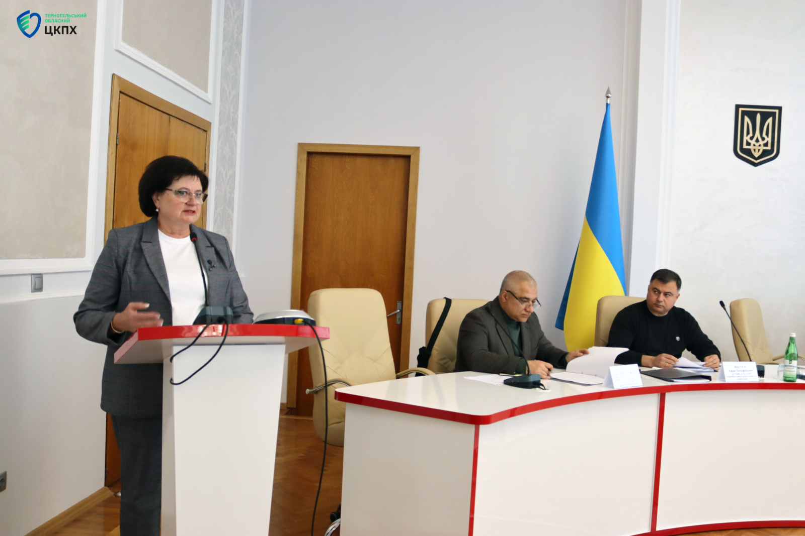 У засіданні регіональної комісії ТЕБ та НС взяла участь генеральна директорка Державної установи «Тернопільський обласний центр контролю та профілактики хвороб МОЗ України», головна державна санітарна лікарка Тернопільської області Оксана Чайчук.