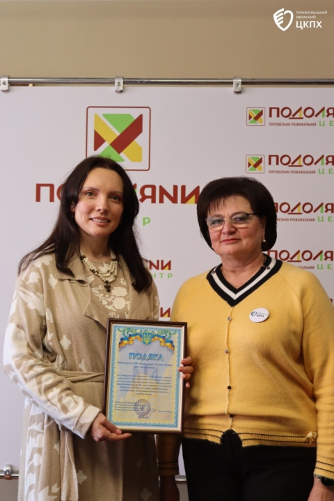 Подяку Президентці Благодійного Фонду «Подоляни» Тетяні Чубак вручила генеральна директорка Центру Оксана Чайчук