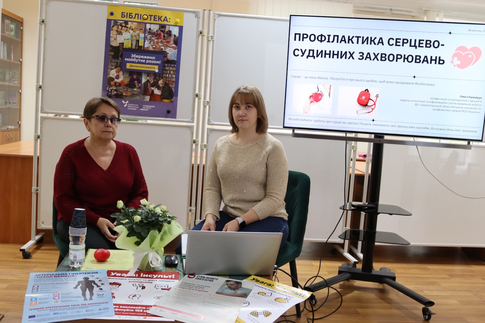 Щодня #Тернопільський_ОЦКПХ стоїть на варті здоров’я населення Тернопільської області. Сьогодні, для працівників Тернопільської обласної універсальної наукової бібліотеки, спеціалісти Центру провели змістовний інформаційний захід, присвячений серцево-судинним захворюванням та їх профілактиці — головній причині смертності у світі.