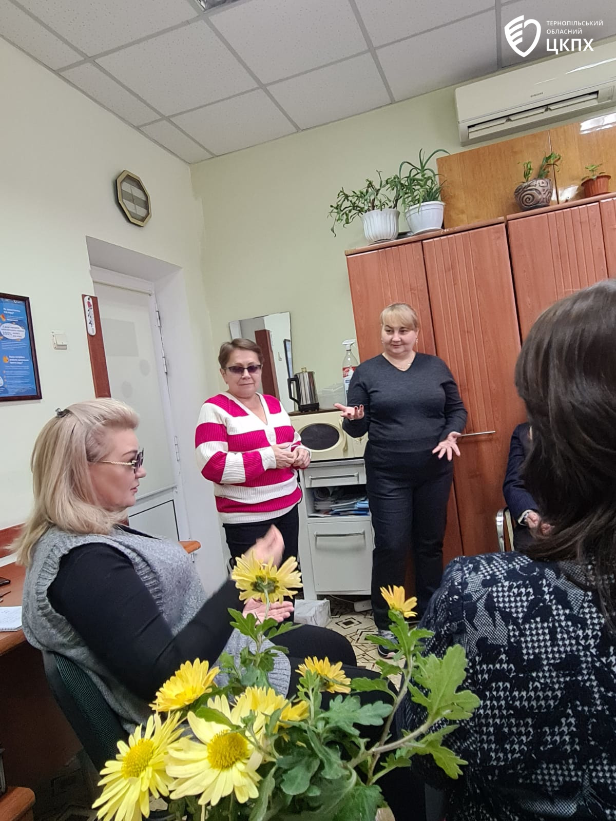 Сьогодні, 14 листопада, завідувачка відділу промоції здорового способу життя ДУ «Тернопільський ОЦКПХ МОЗ», координаторка з психічного здоров’я у Тернопільській області проєкту USAID «Розбудова стійкої системи громадського здоров’я» Харченко Наталія та фасилітаторка «Програми емоційного та фізичного відновлення», психологиня відділу промоції здорового способу життя Бідяк Тетяна провели воркшоп для фахівців Тернопільського обласного центру контролю та профілактики хвороб.