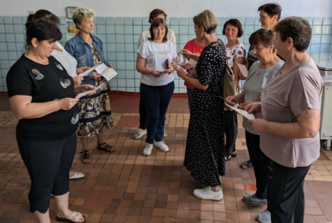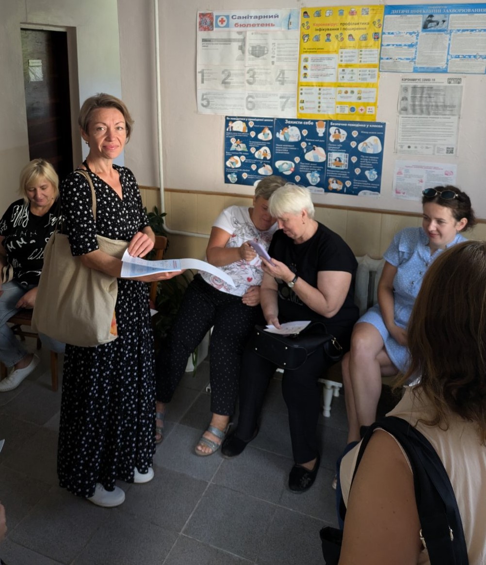 Під час зустрічі використано відривні блокноти «Прості кроки до раннього виявлення раку молочної, раку шийки матки та раку передміхурової залози», які були розроблені відділом профілактики неінфекційних захворювань Центру громадського здоров’я за підтримки Міжнародного Медичного Корпусу.