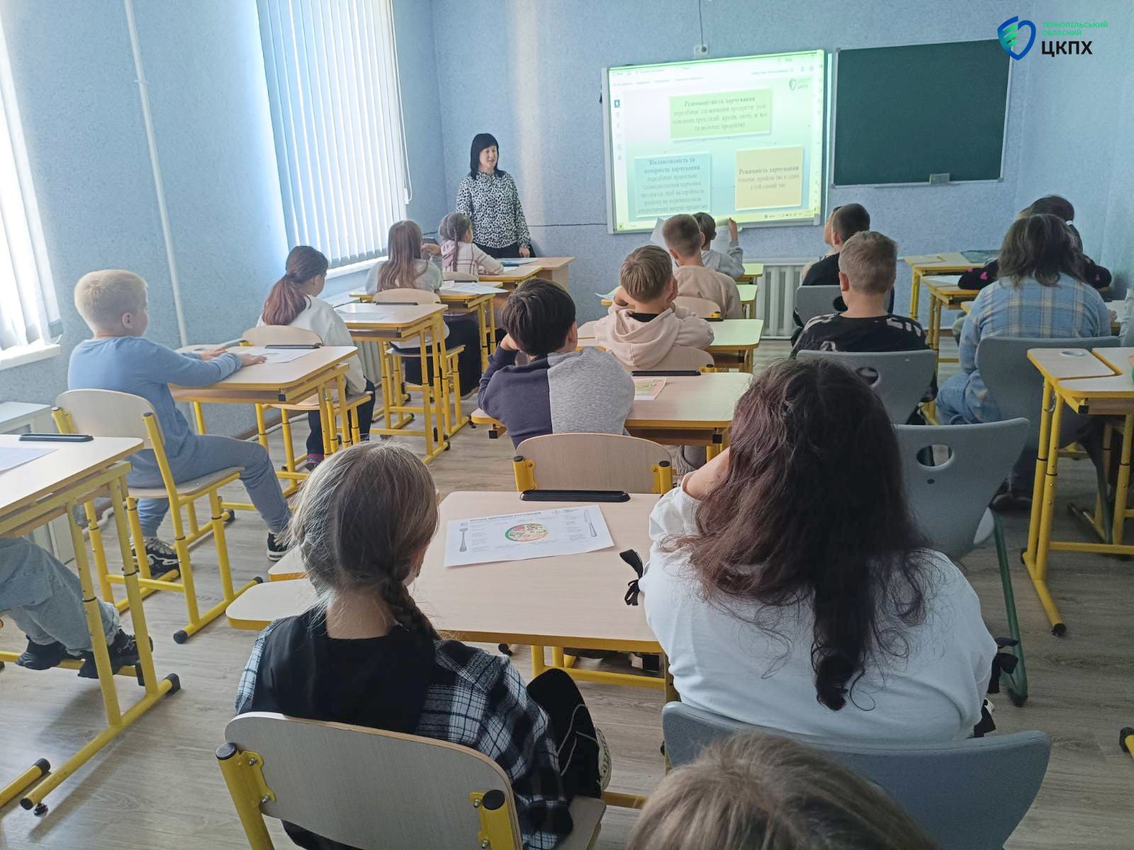 25 вересня 2025У рамках інформаційної роботи з підвищення обізнаності населення про здорове харчування, лікар-епідеміолог Козівського відділу Тернопільського міськрайонного центру ДУ «Тернопільський обласний центр контролю та профілактики хвороб МОЗ України» Олена Хоміцька 25 вересня провела інформаційно-просвітницький захід у Зборівському ліцеї ім. Р. Завадовича Зборівської міської ради на тему «Основи здорового харчування школяра».