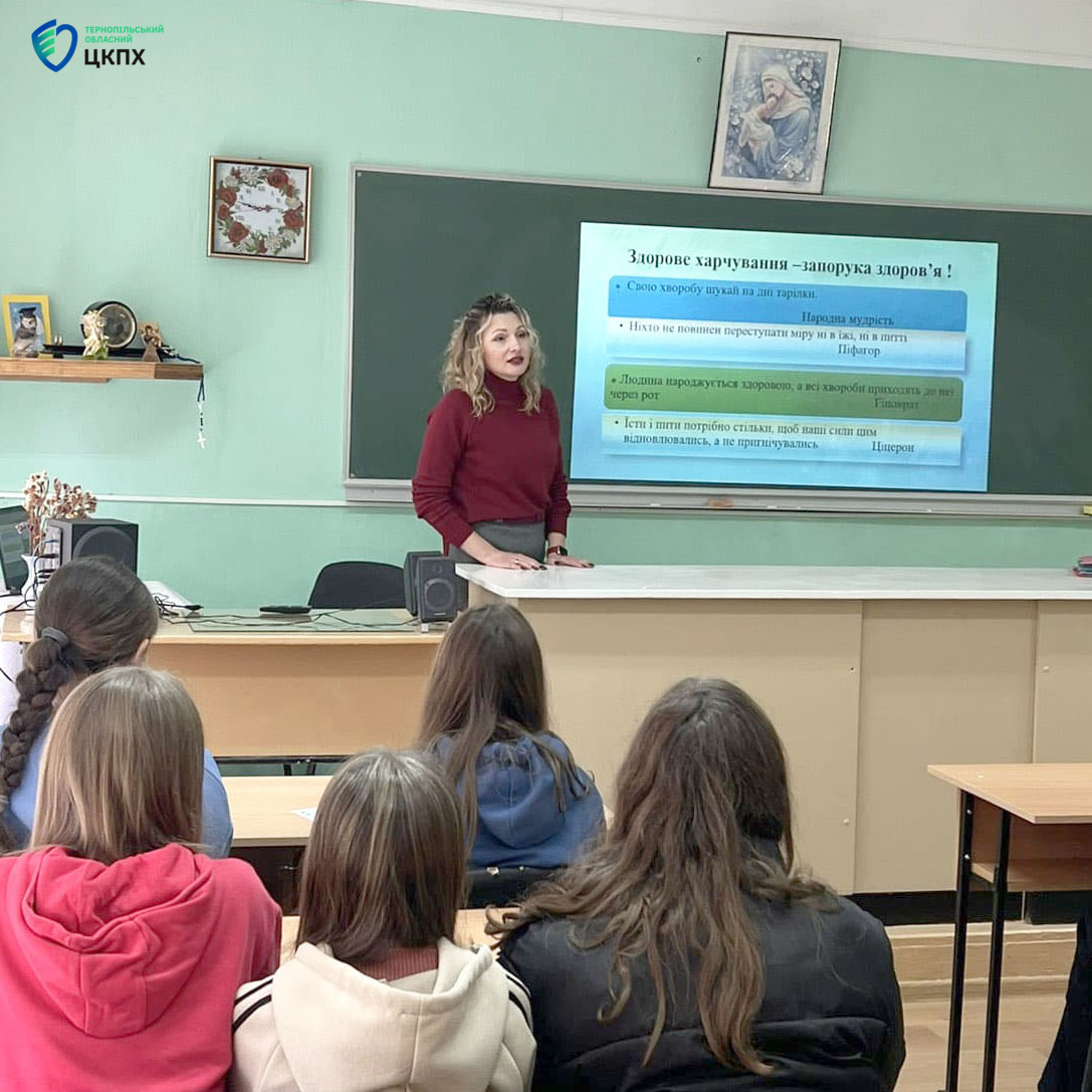 4 листопада Людмила Дмитряк, завідувачка відділу епідеміологічного нагляду та профілактики неінфекційних хвороб Чортківського міськрайонного центру ДУ «Тернопільський обласний центр контролю та профілактики хвороб МОЗ України», провела дві інформаційно-просвітницькі лекції, надавши інформацію про збалансовану їжу й корисні звички.