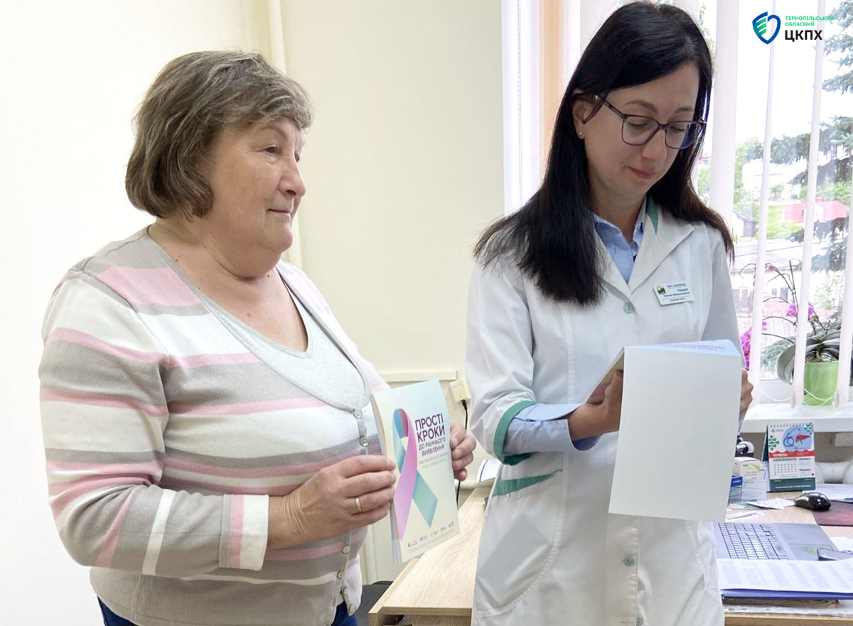 Лікарка Центру розповсюдила інформаційні матеріали, підготовлені фахівцями Міністерства охорони здоров’я України, Центру громадського здоров’я України, присвячені питанням профілактики онкозахворювань, зокрема відривні блокноти «Прості кроки до раннього виявлення онкозахворювань».