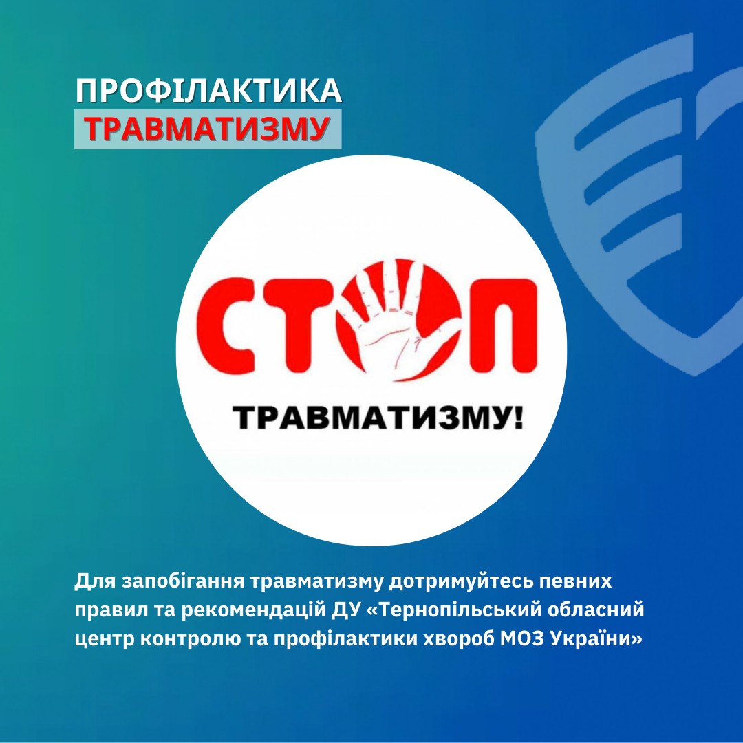 Для запобігання травматизму дотримуйтесь певних правил та рекомендацій ДУ «Тернопільський обласний центр контролю та профілактики хвороб МОЗ України».