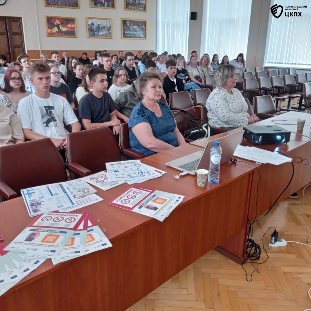 27 травня 2024Сьогодні, фахівці відділу епідеміологічного нагляду (спостереження) та профілактики неінфекційних захворювань ДУ «Тернопільський ОЦКПХ МОЗ» провели зустріч з представниками Теребовлянської міської ради: виконавчим комітетом, керівниками структурних підрозділів міської ради, представниками поліції громади, викладацьким складом та здобувачами освіти Теребовлянського фахового коледжу культури і мистецтв, Теребовлянської спеціалізованої школи ліцею ТМР, Треребовлянського академічного ліцею ім. Ярослава Стецька ТОР та Теребовлянського навчально-реабілітаційного центру Тернопільської обласної ради щодо впровадження в області заходів згідно Стратегії запобігання та зменшення вживання тютюнових виробів в області на 2023-2026 затвердженої розпорядженням голови ТОВА 14.07.2023р.