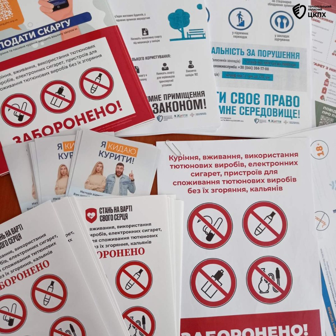 Спеціалісти відділу епідеміологічного нагляду (спостереження) та профілактики неінфекційних захворювань ДУ «Тернопільський ОЦКПХ МОЗ» залишили представникам виконавчої влади, самоврядування та поліції інформаційні буклети для розповсюдження їх серед населення, а також налагоджено співпрацю з виконавчим комітетом Теребовлянської міської ради.