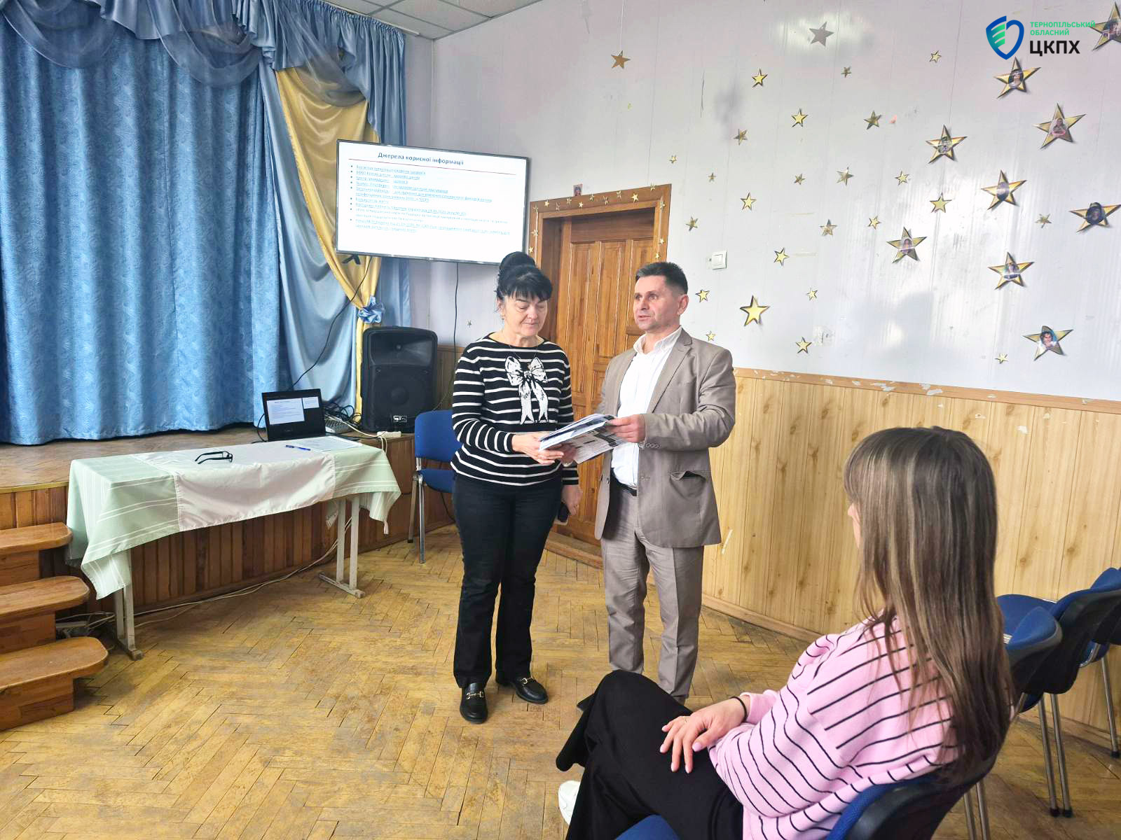 Активність у межах проєкту сьогодні відбулася у Теребовлянській громаді. Лекцію для педагогічного колективу Теребовлянської загальноосвітньої школи І–ІІІ ступенів №2, присвячену актуальним питанням здорового харчування, провів завідувач відділу епідеміологічного нагляду та профілактики неінфекційних хвороб Теребовлянський відділ Тернопільського міськрайонного центру Михайло Романів.