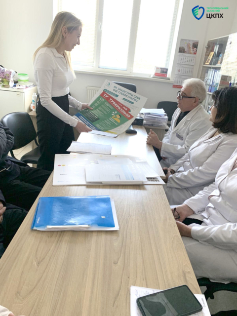 19 березня 2026За організації та сприяння Державної установи відбулася нарада з медичними працівниками КНП «Центр первинної медико-санітарної допомоги» Підгаєцька міської ради у межах інформаційної кампанії Центру: «Березень — місяць подолання туберкульозу» сьогодні, 19 березня.
