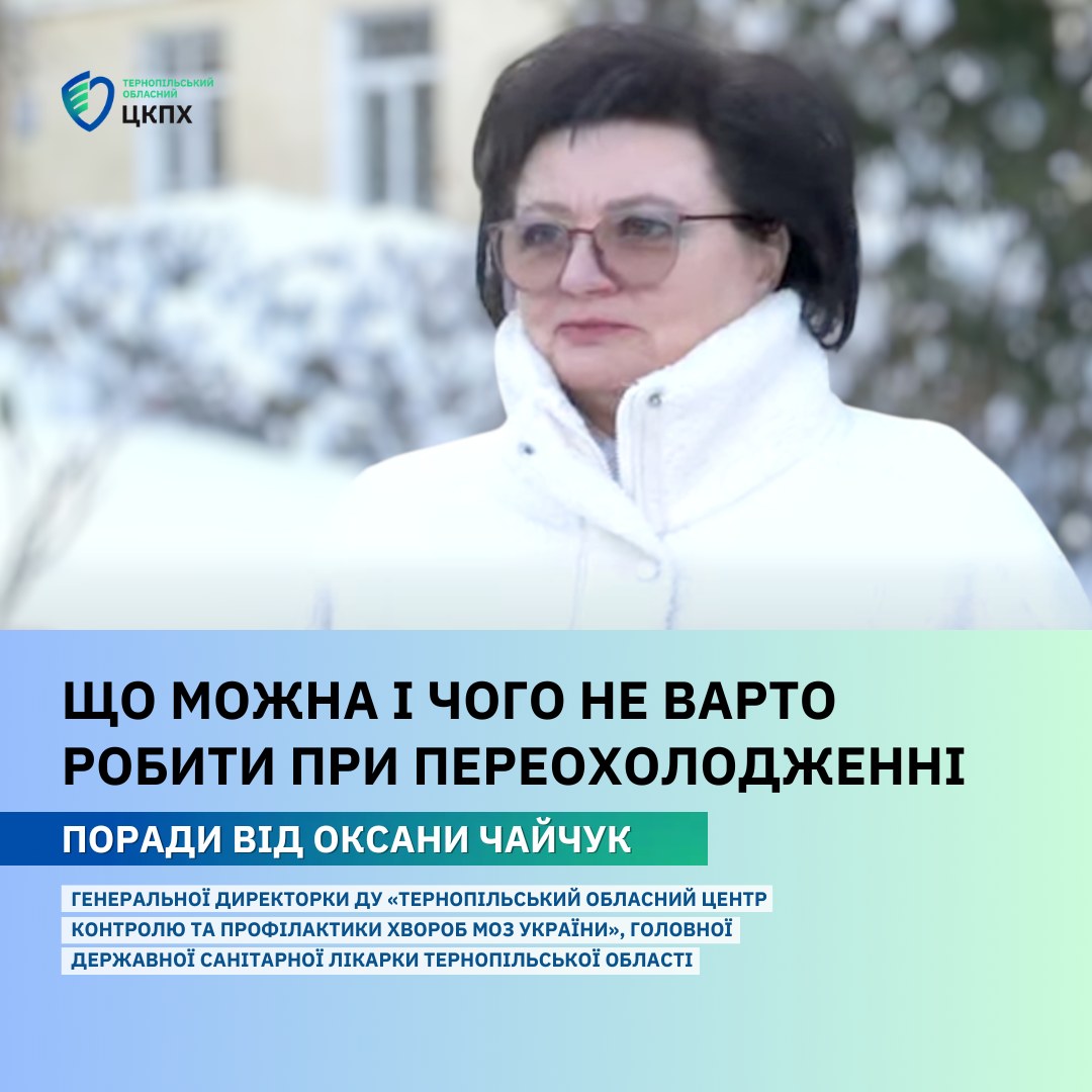 3 лютого 2026Поради від Оксани Чайчук, генеральної директорки ДУ «Тернопільський обласний центр контролю та профілактики хвороб МОЗ України», головної державної санітарної лікарки Тернопільської області