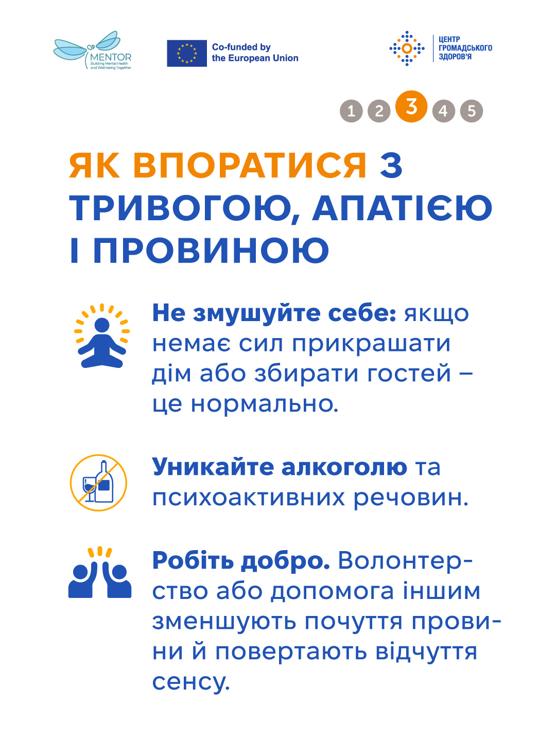 Уникайте алкоголю та психоактивних речовин. Вони можуть дати ілюзію полегшення, але згодом лише посилюють тривогу й пригнічений стан.