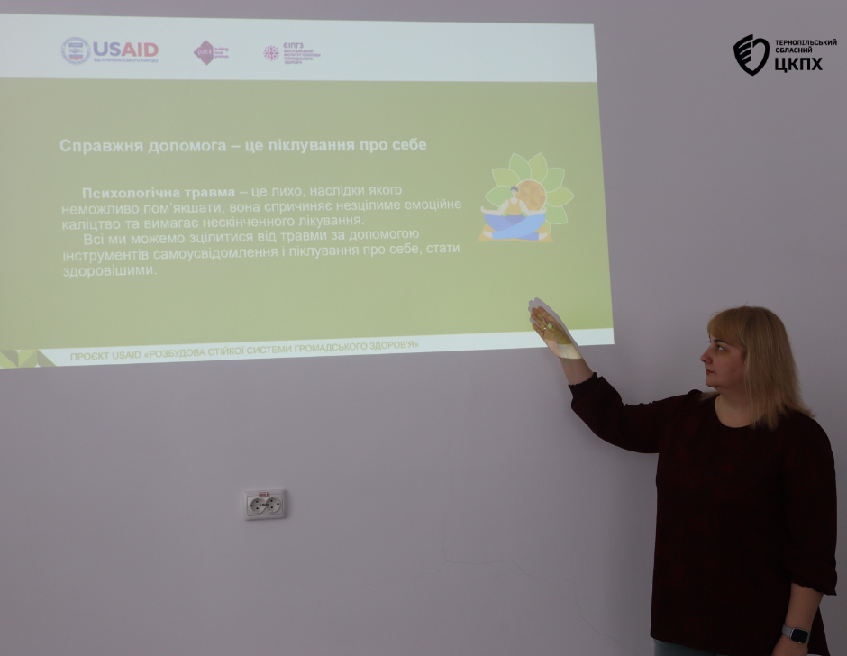 Саме тому, сьогодні, 10 травня, в межах проєкту USAID Ukraine – USAID Україна Розбудова стійкої системи громадського здоров’я та до Місяця обізнаності про психічне (ментальне) здоров’я фахівці відділу промоції здорового способу життя ДУ «Тернопільський ОЦКПХ МОЗ» провели пізнавальний та вкрай важливий в нинішніх реаліях нашого життя захід для медичних працівників та для внутрішньо переміщених осіб Чортківського району.