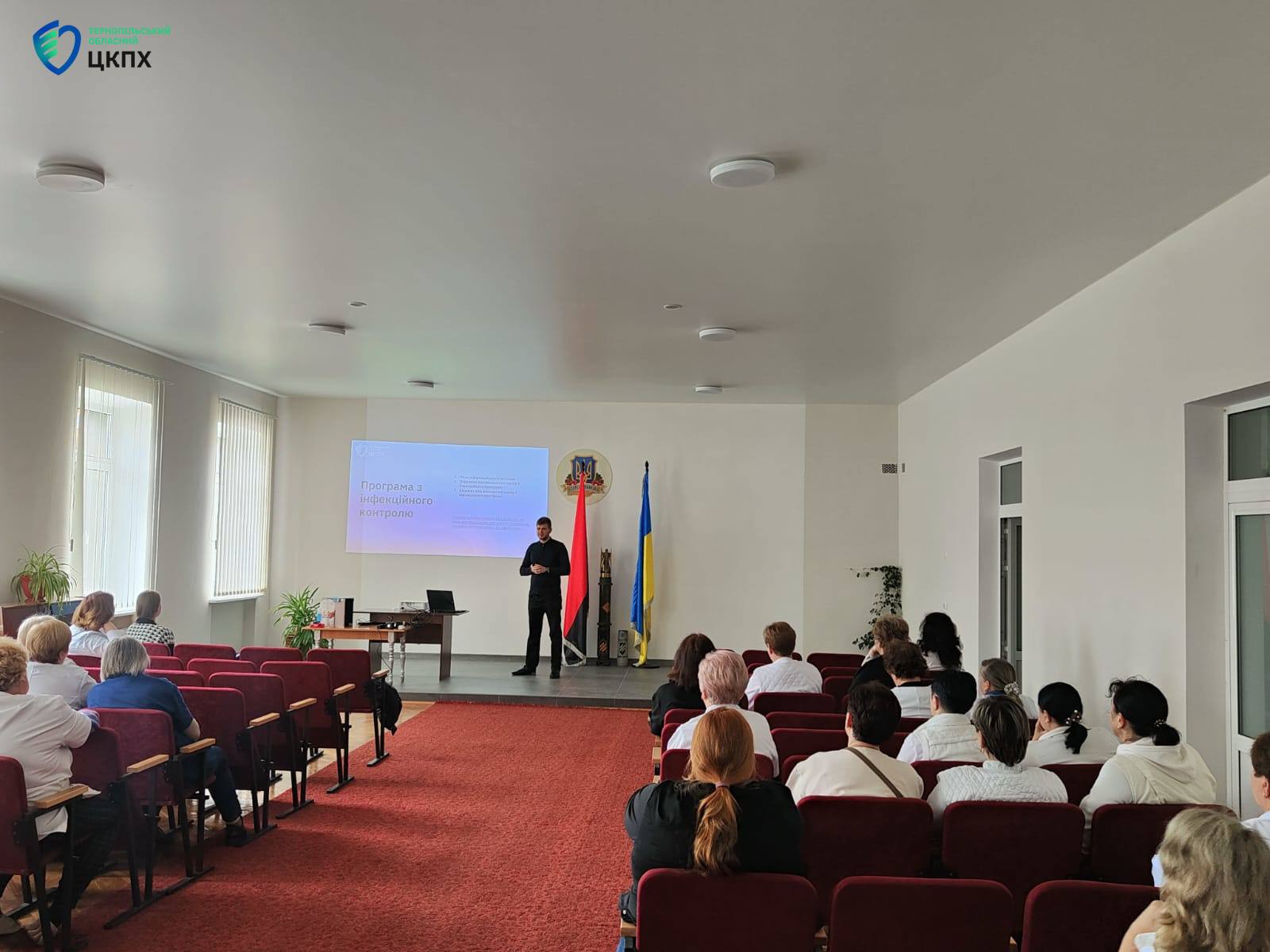 Відкриваючи освітній захід із безперервного професійного розвитку, з вітальним словом до учасників звернулась генеральна директорка ДУ «Тернопільський ОЦКПХ МОЗ», головна державна санітарна лікарка Тернопільської області Оксана Чайчук. Вона привітала учасників заходу та наголосила на важливості впровадження інноваційних підходів та сучасних стандартів інфекційного контролю для підвищення якості медичних послуг.