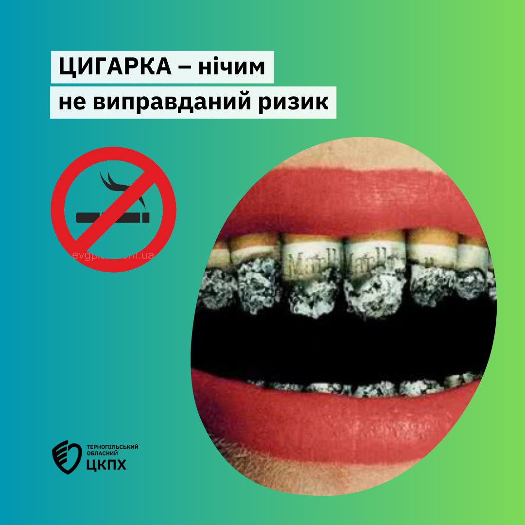 Ми живемо у складний воєнний час, який і так випробовує нас на міцність. Фахівці ДУ «Тернопільський обласний центр контролю та профілактики хвороб МОЗ України» закликають стати на варті свого серця, свого здоров’я та близьких і рідних – кинути курити вже і сьогодні. Безпечного куріння не існує!