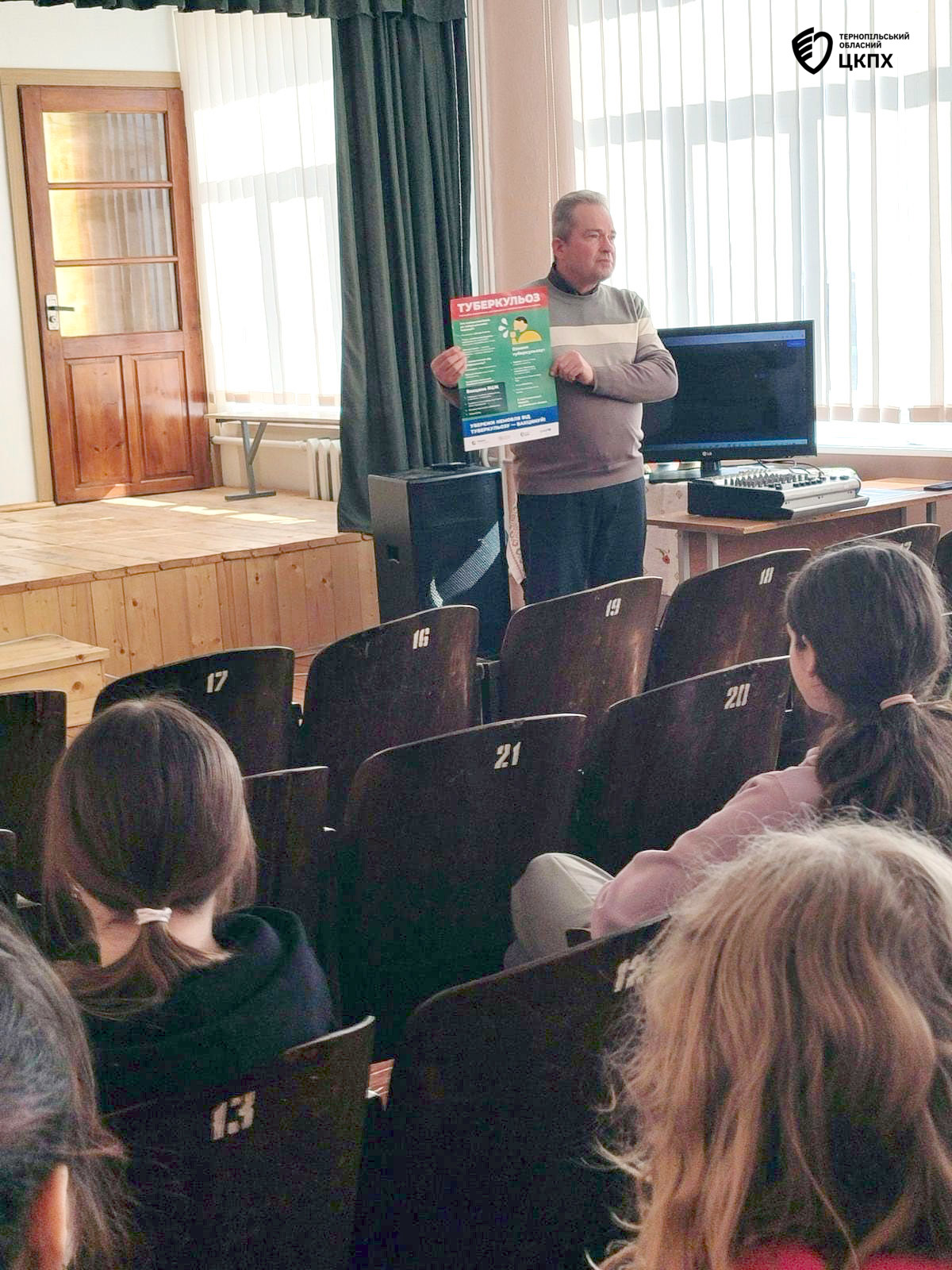 Лекцію-презентацію «Актуальні проблеми боротьби з туберкульозом в сучасних умовах» провів для учнів 8-9 класів та вчителів лікар-епідеміолог Чортківського міськрайонного центру ДУ «Тернопільський ОЦКПХ МОЗ України» Олег Голінатий.