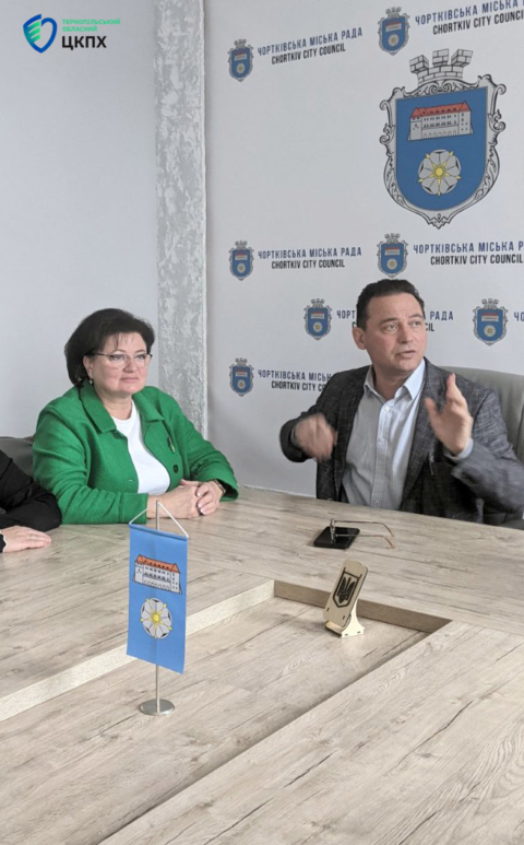 Фахівці Центру: генеральна директорка ДУ «Тернопільський обласний центр контролю та профілактики хвороб МОЗ України», головна державна санітарна лікарка Тернопільської області Чайчук Оксана, завідувачка відділу промоції здорового способу життя «Тернопільський ОЦКПХ МОЗ», координаторка з психічного здоров’я у Тернопільській області проєкту «Розбудова стійкої системи громадського здоров’я» Харченко Наталія спільно зі заступником міського голови Чорткова Гуріним Віктором обговорили ключові напрями для розробки «Плану заходів на виконання Концепції з психічного здоров’я» в Чортківській громаді.