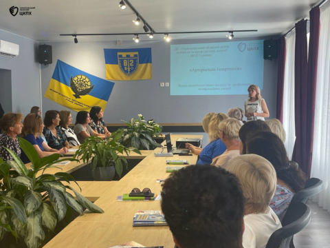 Лікар-епідеміолог Світлана Горохівська представила презентацію на тему «Артеріальна гіпертензія».