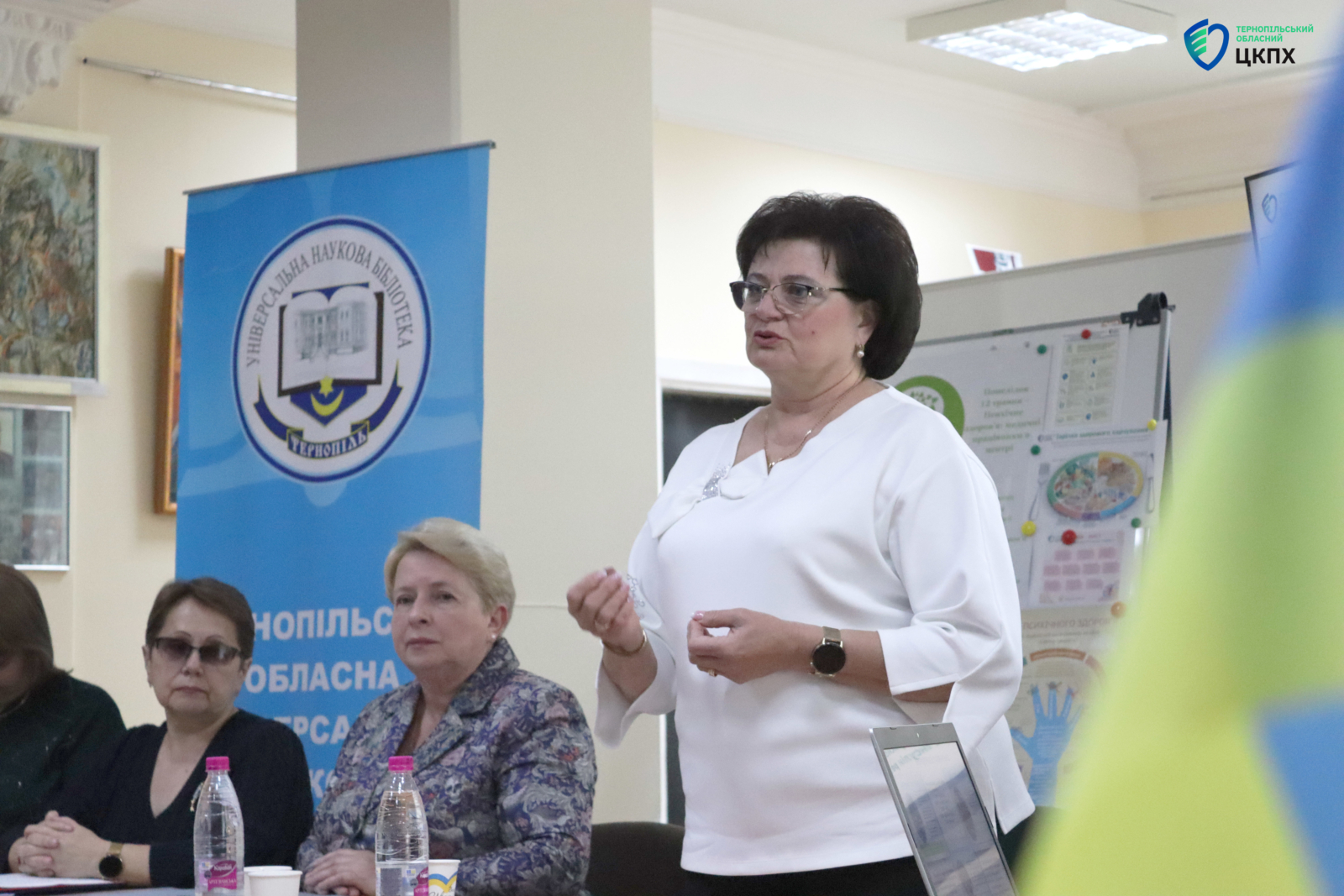 З вітальним словом до учасників заходу звернулася Чайчук Оксана, генеральна директорка ДУ «Тернопільський ОЦКПХ МОЗ», головна державна санітарна лікарка Тернопільської області: