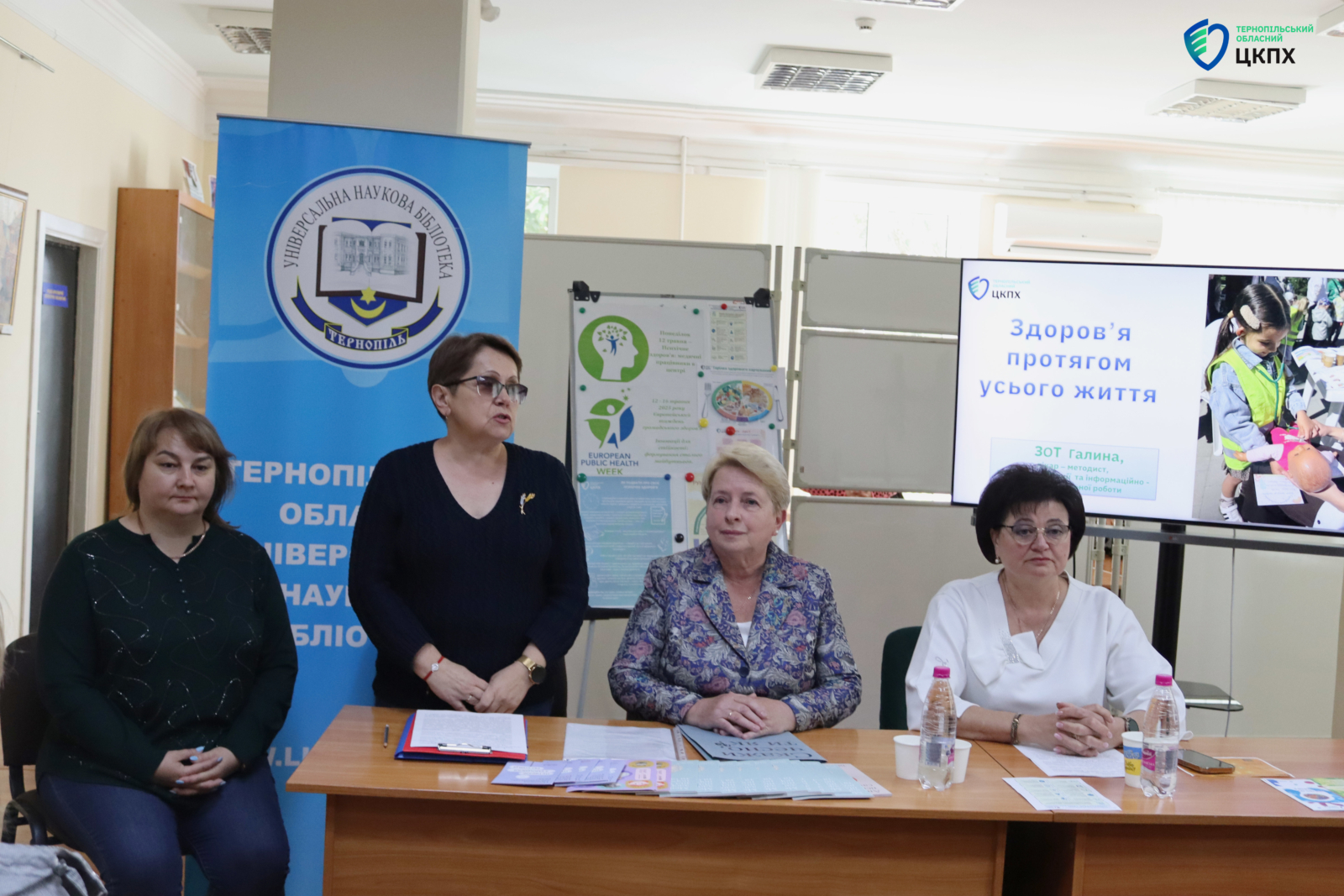 12 травня 2025До Європейського тижня громадського здоровʼя 12 травня у читальному залі Тернопільської обласної універсальної наукової бібліотеки фахівцями Центру проведено інформаційно-просвітницький захід на тему «Психічне здоров’я: працівники охорони здоров’я в Центрі».