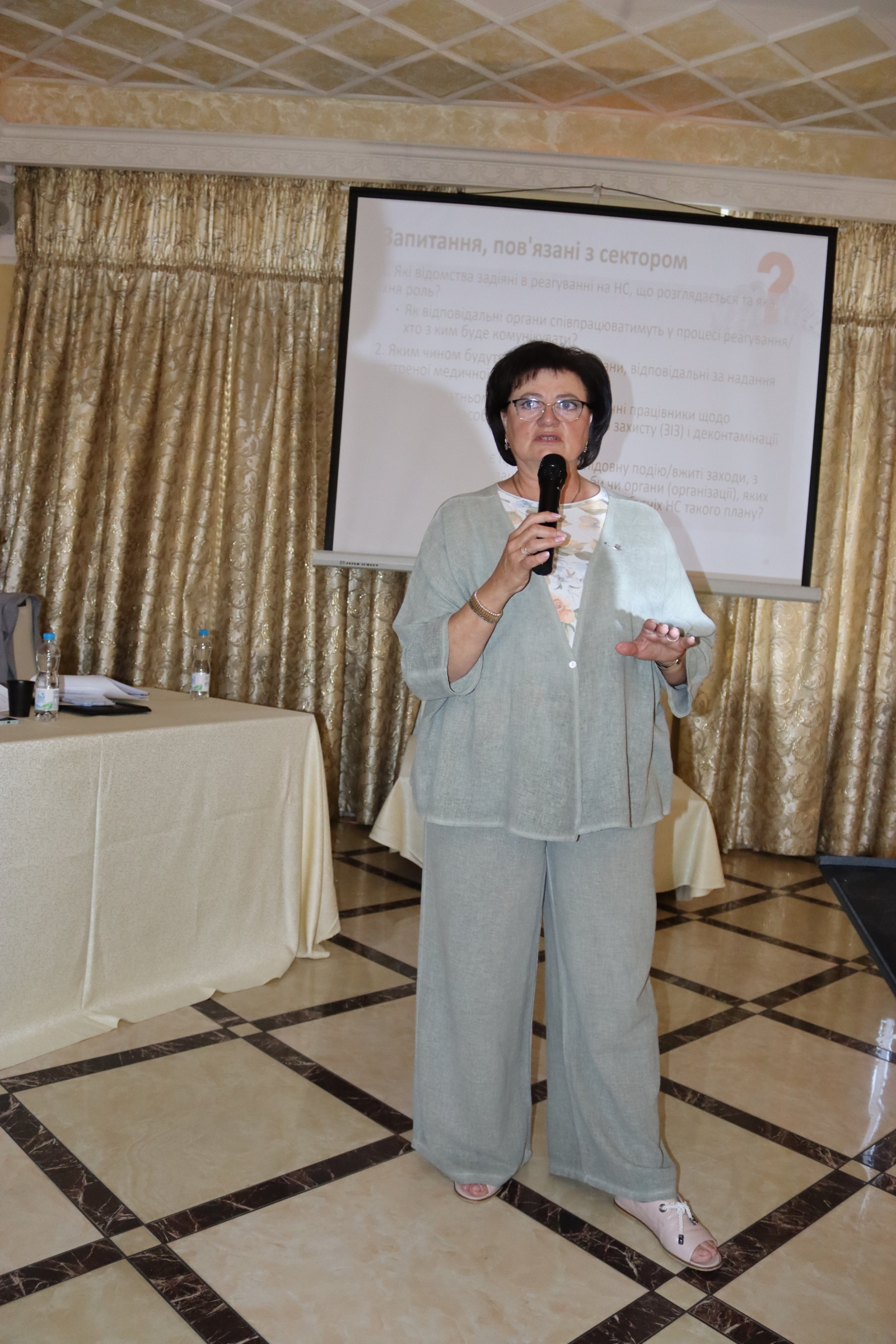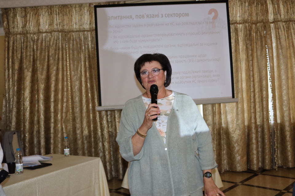З вітальним словом до учасників навчання звернулася Оксана Чайчук, генеральна директорка ДУ «Тернопільський обласний центр контролю та профілактики хвороб МОЗ України», головна державна санітарна лікарка Тернопільської області. Оксана Тимофіївна наголосила на критичній важливості постійної готовності до швидкого та ефективного реагування на хімічні загрози, а також на цінності міжрегіональної співпраці у таких питаннях.