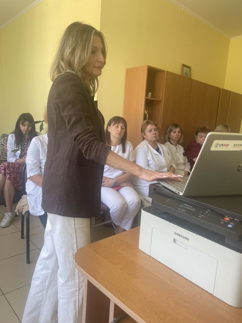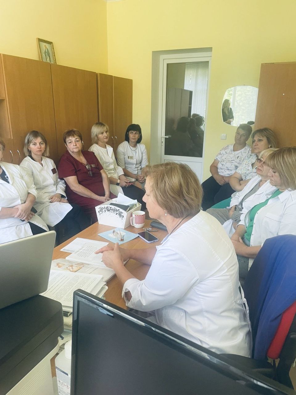 Людмила Дмитряк, завідувачка відділу епідеміологічного нагляду та профілактики неінфекційних хвороб Чортківського міськрайонного центру ДУ «Тернопільський обласний центр контролю та профілактики хвороб МОЗ України», провела обговорення для працівників пологово-гінекологічного відділення, які щодня працюють з вагітними жінками та молодими матерями.